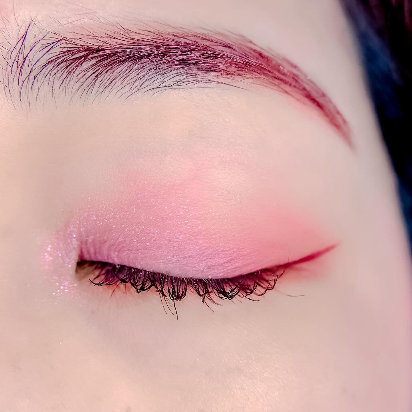 ピンクにグレージュも良いですね👌💗 今日は可愛らしい感じにしてみました💕 上下瞼黒目〜目頭側にラメを塗ってキラキラさせております🤩 目尻はマットのピンクを濃いめに重ねて💗 グレージュのアイライナーと相性◎