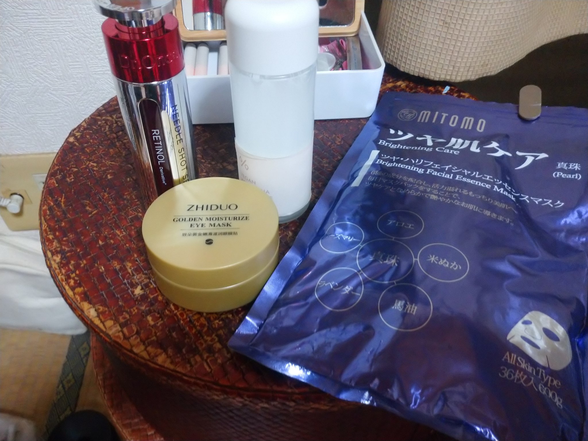 水洗顔➭なめらか本舗ミスト化粧水 N➭とろーり化粧水シンプリー➭LIHAWモイスチャーローション(ジャバジャバ化粧水)➭DAISOCICA ローション➭シカモイストオールインワンゲル(軽いマッサージ)➭美白マスク➭肌ラボ白潤プレミアム薬用浸透美白化粧水➭美容液➭肌ラボ白潤プレミアム 薬用浸透美白乳液