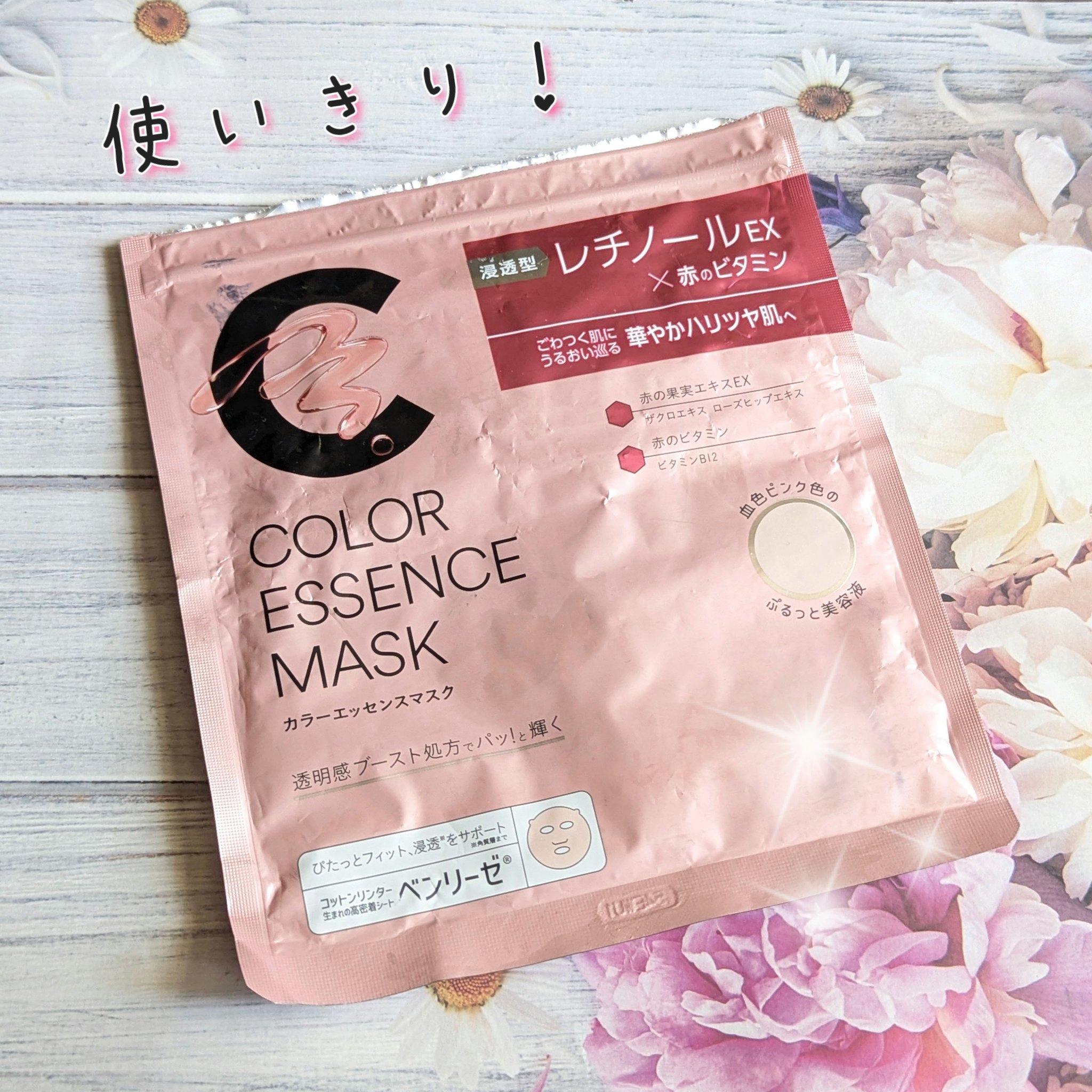 カラーエッセンスマスク ピンク透明感ブースト処方&血色ピンク色のぷるっと美容液で華やかなツヤ肌になるそうです🩷パッケージもだけど、シートもピンク🩷美容液にヒタヒタに浸かっています。薄手のシートでお肌にピタリとはりつき、はがすとしっとりとした使...