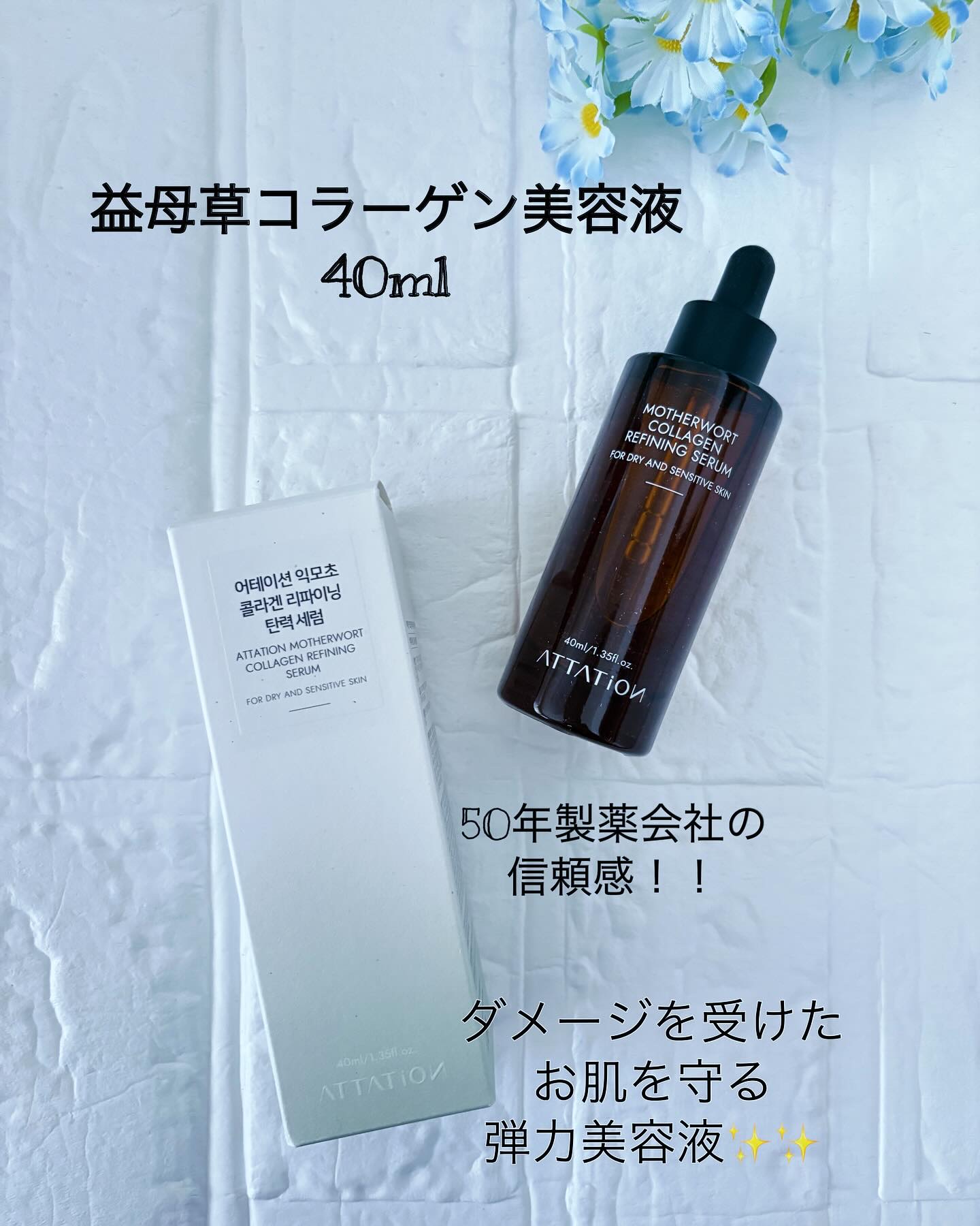 韓国のダマーヴィーガンスキンケアブランド✨『ATTATION』☺️🌿.韓国で50年歴史がある製薬会社である京東製薬と、化粧品製造会社であるコルマが共同開発で誕生したブランド✨.✔︎益母草コラーゲン美容液.益母草とダブル酵母を加えて開発されたコ...