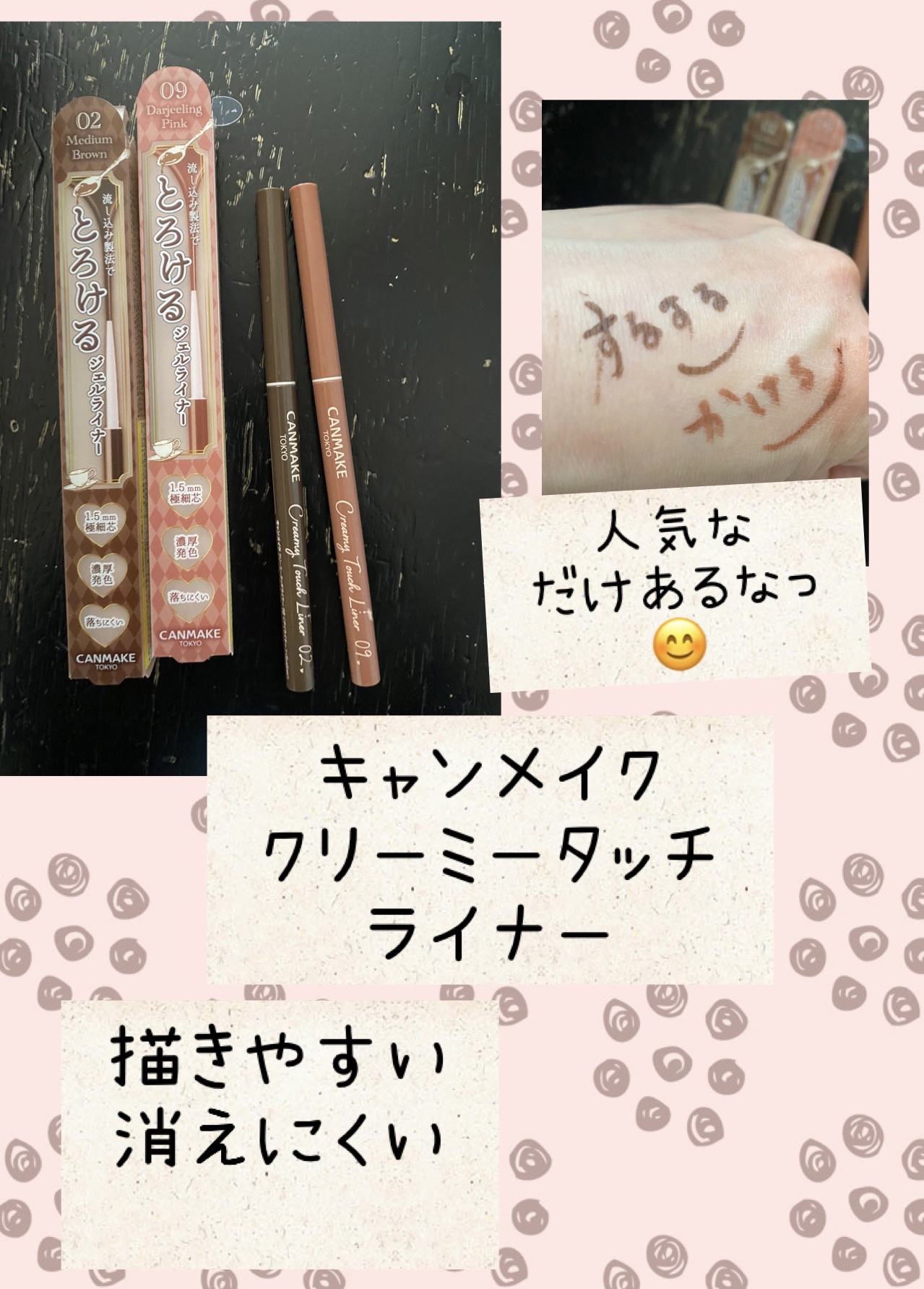 とろける描き心地❤️1.5mmの超極細ジェルアイライナー✨何回もリピしてるCANMAKEのクリーミータッチライナー🥰使用したのは09ダージリンピンク🩷血色感を与えるテラコッタピンクで優しくて抜け感のある印象になれます✨1.5mmの超極細芯のく...