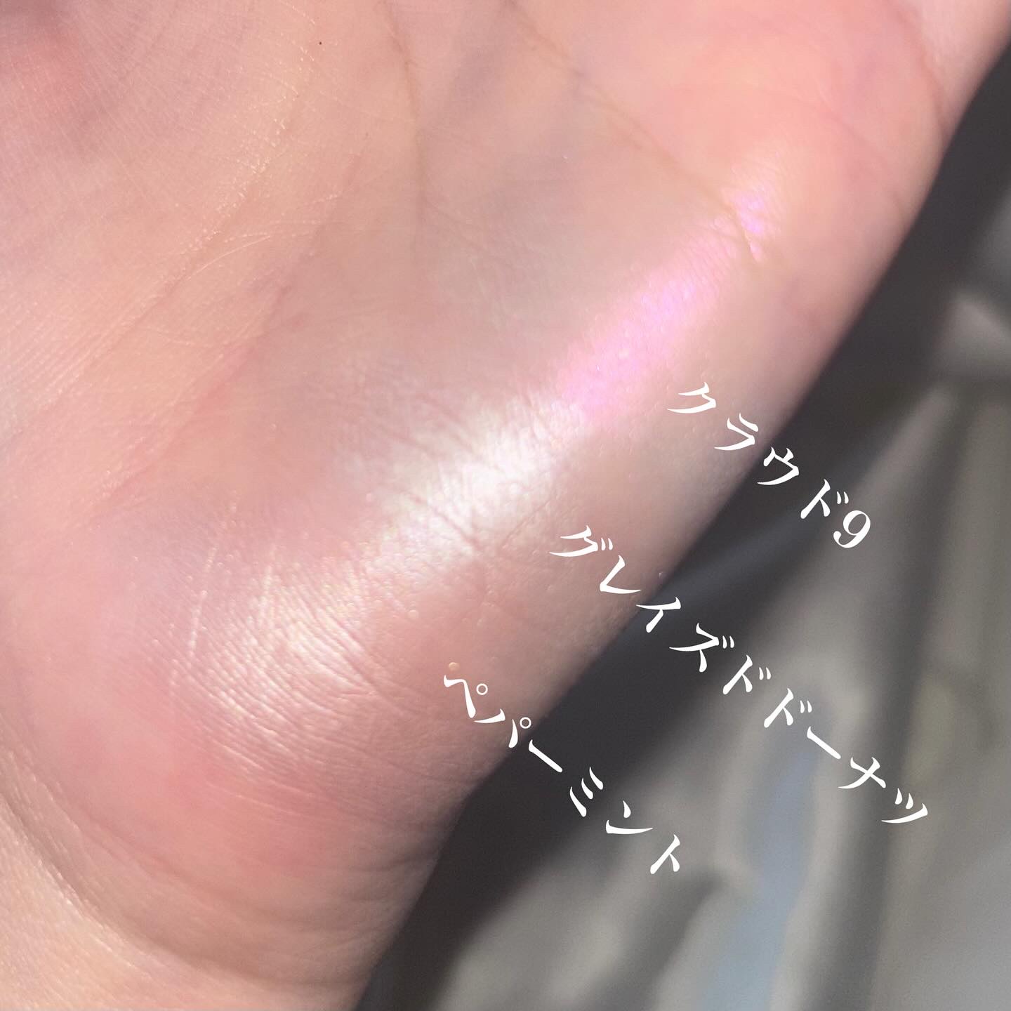 - 【Cloud9】イソドデカン、酸化チタン、マイカ、ジヘプタン酸ネオペンチルグリコール、ステアリン酸亜鉛、タルク、パルミチン酸エチルヘキシル、フェノキシエタノール、エタノール 【Glazed Donut】イソドデカン、マイカ、タルク、酸化チタン、ジヘプタン酸ネオペンチルグリコール、ステアリン酸亜鉛、パルミチン酸エチルヘキシル、フェノキシエタノール、酸化鉄、エタノール、酸化スズ【Pillow Talk】イソドデカン、タルク、マイカ、酸化チタン、ジヘプタン酸ネオペンチルグリコール、ステアリン酸亜鉛、パルミチン酸エチルヘキシル、フェノキシエタノール、酸化鉄、エタノール、赤201、酸化スズ【Star Island】イソドデカン、マイカ、タルク、酸化チタン、ジヘプタン酸ネオペンチルグリコール、ステアリン酸亜鉛、パルミチン酸エチルヘキシル、酸化鉄、フェノキシエタノール、カオリン、石英、エタノール【Peppermint】イソドデカン、マイカ、酸化チタン、ジヘプタン酸ネオペンチルグリコール、タルク、ステアリン酸亜鉛、パルミチン酸エチルヘキシル、酸化鉄、フェノキシエタノール、カオリン、石英、エタノール【Sugar Cookie】イソドデカン、マイカ、酸化チタン、ジヘプタン酸ネオペンチルグリコール、タルク、ステアリン酸亜鉛、パルミチン酸エチルヘキシル、酸化鉄、フェノキシエタノール、石英、カオリン、エタノール【Space Baby】 イソドデカン、マイカ、酸化チタン、ジヘプタン酸ネオペンチルグリコール、ステアリン酸亜鉛、タルク、パルミチン酸エチルヘキシル、フェノキシエタノール、エタノール 【Out of This World】 イソドデカン、酸化チタン、マイカ、ジヘプタン酸ネオペンチルグリコール、ステアリン酸亜鉛、パルミチン酸エチルヘキシル、タルク、フェノキシエタノール、酸化スズ、エタノール 【Rodeo Drive】 イソドデカン、マイカ、タルク、酸化チタン、ステアリン酸亜鉛、ジヘプタン酸ネオペンチルグリコール、パルミチン酸エチルヘキシル、酸化鉄、フェノキシエタノール、酸化スズ、エタノール、赤202【Bali】イソドデカン、タルク、マイカ、酸化チタン、ジヘプタン酸ネオペンチルグリコール、ステアリン酸亜鉛、パルミチン酸エチルヘキシル、フェノキシエタノール、酸化鉄、酸化スズ、エタノール 【Blissful】イソドデカン、マイカ、タルク、ステアリン酸亜鉛、酸化チタン、ジヘプタン酸ネオペンチルグリコール、パルミチン酸エチルヘキシル、酸化鉄、フェノキシエタノール、エタノール