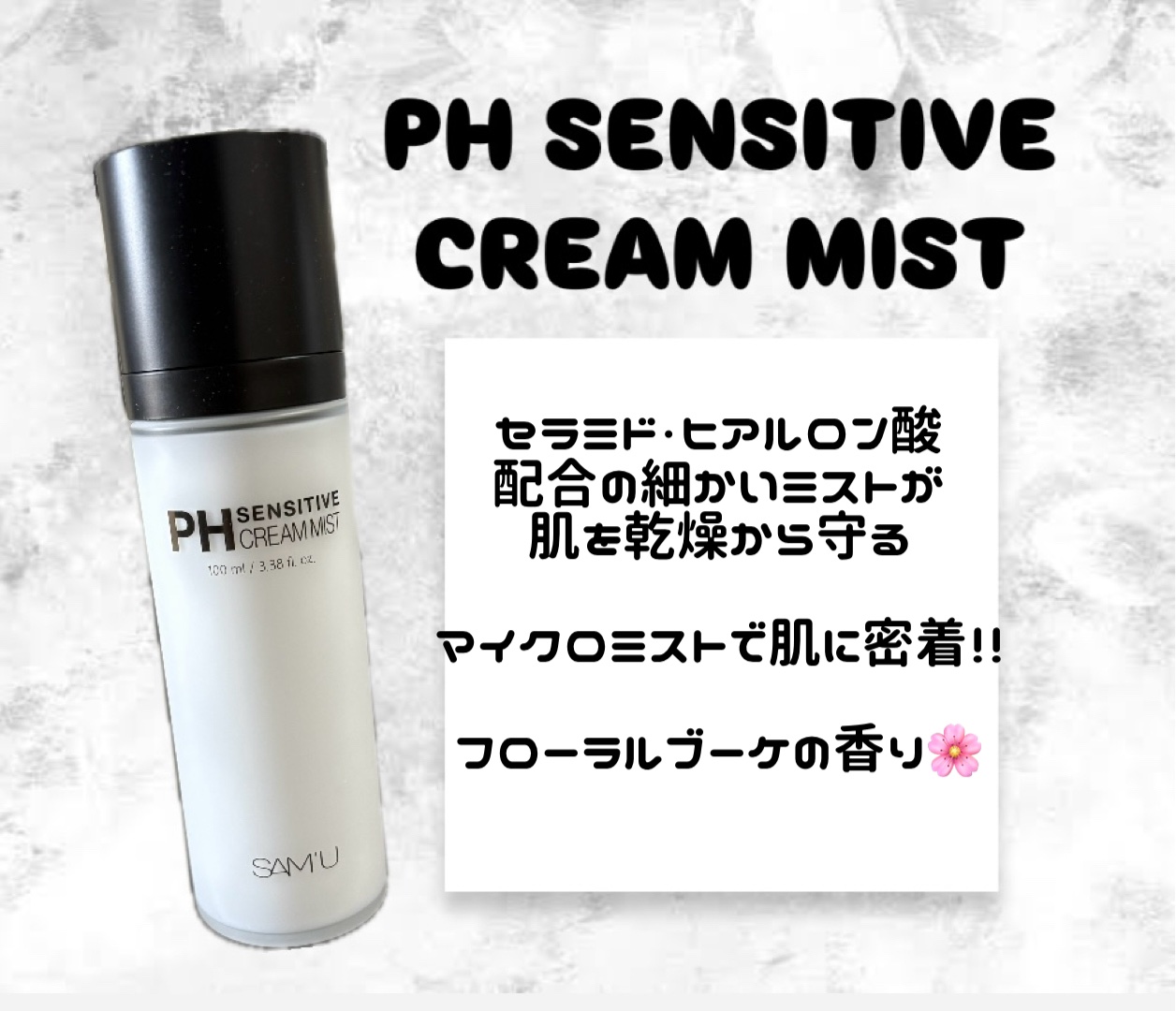 - サミュの大人気商品であるPHセンシティブクリームの成分をそのまま詰め込んで誕生した低刺激高保湿クリームミストです。 細かい霧状のミストがお肌に素早くなじみ、保湿・整肌ケアはもちろんのことお肌につやを与えてくれます。