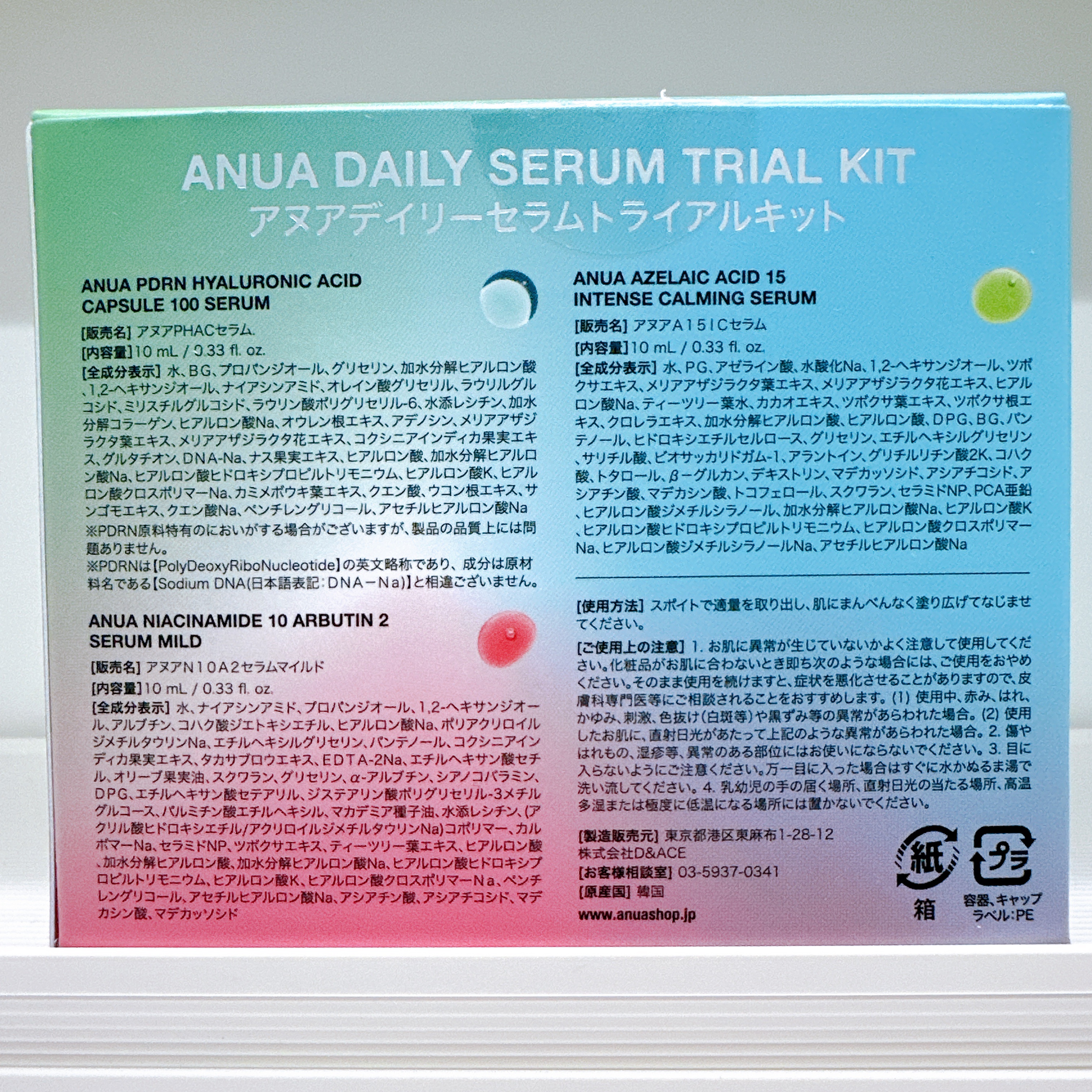 【購入品レポ】◆Anuaデイリーセラムトライアルキット【数量限定】各10ml2,580円(税込)まさにこんなの求めてた!!!🥺Anuaの美容液気になってはいたけど韓国コスメのスキンケア系は合わないことが多かったのでなかなか購入までは至らず…そ...