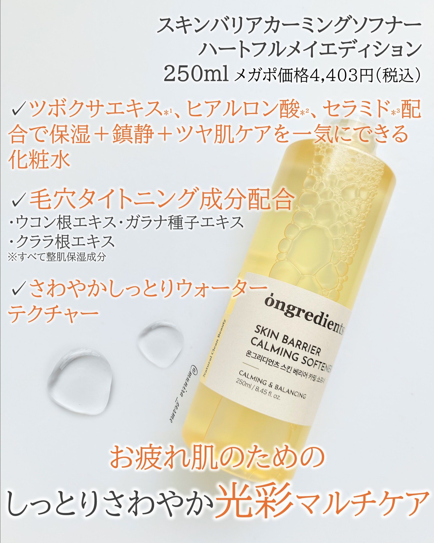 Ongredients オングリディエンツ スキンバリアカーミングソフナー | 1,980円 |