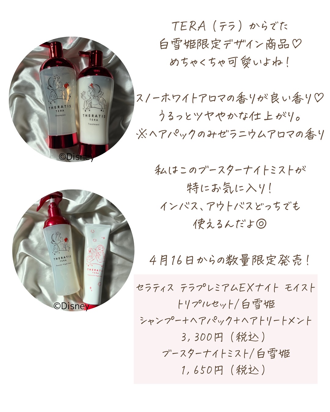 ☽𓂃꙳⋆限定デザイン可愛すぎ🌷「おやすみ中にプリンセス級ヘア♡」ずっと気になってた、 【セラティス】の限定デザイン✨今回はなんと、 ナイトリペアからはラプンツェルver.、 テラからは白雪姫ver.が数量限定発売💗【ラプンツェルデザイ...