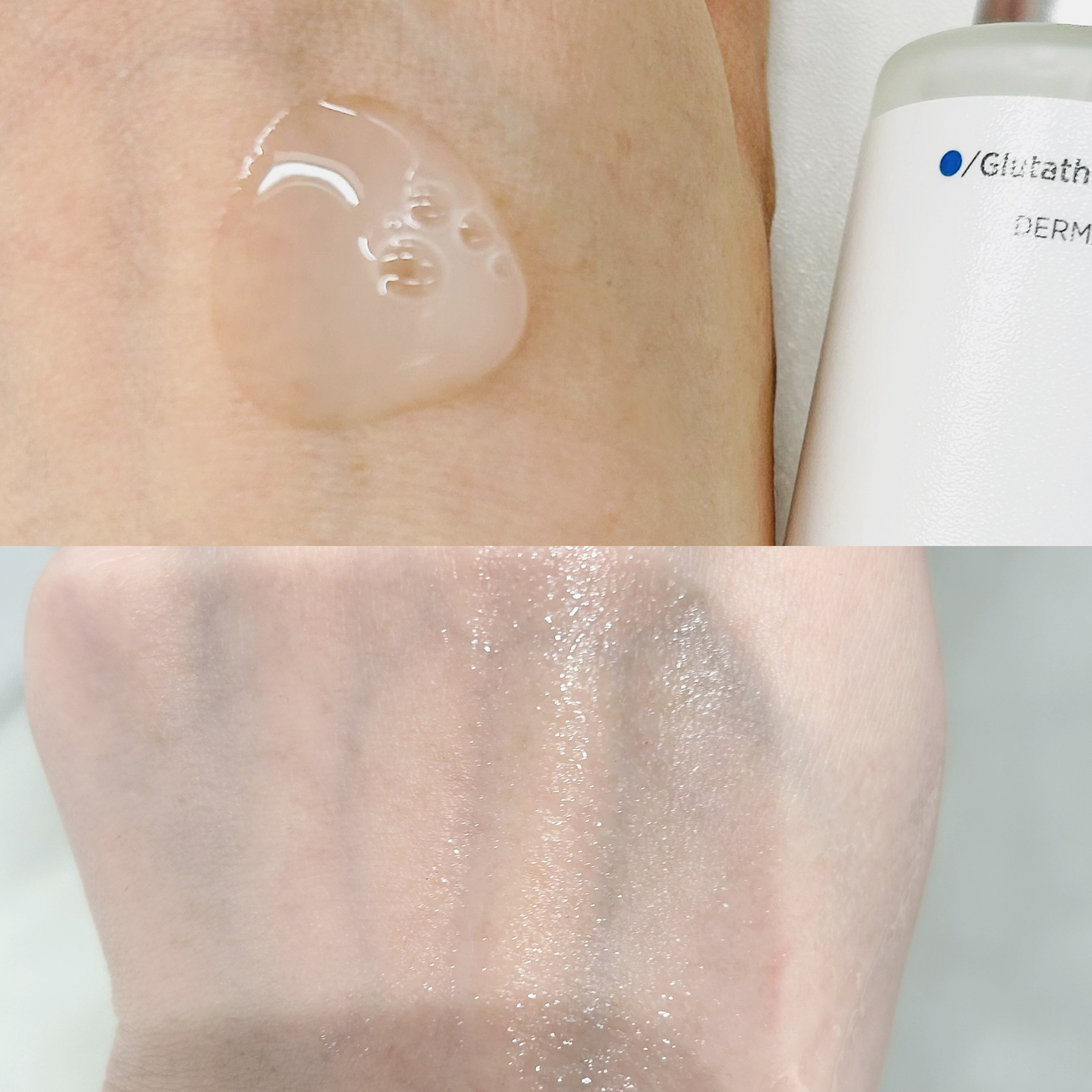 - <ダーマセラム グルタチオン3%> 水、BG、グルタチオン、ペンチレングリコール、水添レシチン、ヒアルロン酸Na、スクワラン、グリセリン、ステアロキシヒドロキシプロピルメチルセルロース、トコフェロール、セルロースガム、カキタンニン、ジカプリン酸ネオペンチルグリコール、サッカロミセスセレビシアエエキス、(エイコサン二酸/テトラデカン二酸)ポリグリセリル-10、乳酸Na、水酸化K、ポリアクリレートクロスポリマー-6、カルボマー、t-ブタノール、1,2-ヘキサンジオール、カプリリルグリコール、PEG-60水添ヒマシ油、フェノキシエタノール、香料