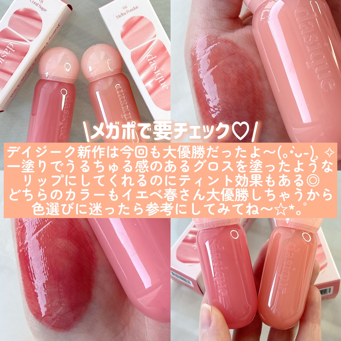 - 【夏新作2カラー登場!】 まるで果実のしずくがそのままリップになったような、みずみずしさと繊細なツヤを詰め込んだ「ジュージーデューイグロウティント」 夏新作で登場する新色「ベリーハート」、「タロミルク」は、透明感とふんわりとした色づきを徹底的にこだわって、何度もテストを重ねて生まれた特別なクールトーンカラー。 ひと塗りで唇をうるおし、重ねても重くならず、果実たっぷり!光をまとうような仕上がりに! - 蜂蜜に漬けた果物のように、うるちゅるふっくらとした果汁粘膜「ジューシーデュイグロウティント」 ミニだけの限定4色 15 ローストロベリー 16 ハミングピンク 17 ロージーシナモン 18 モーブディープス ♡唇に触れた途端、ぷるんと色っぽい果汁コーティング 果汁コーティングがじゅわっと唇に広がり、透明に輝くうるちゅる感を!蜂蜜に漬けた果物のようにぷるんぷるんとした唇を演出するグロウティント ♡イエベ、ブルべに合わせた多彩なカラーバリエーション 14色のカラーバリエーションで単独または、2色レイヤーリングして様々なリップメイクを演出 ♡ティント+リップグロスを一気に塗る効果! ティントの鮮やかな発色とリップグロスのうるうる透明ツヤ感が何度塗り重ねてもべたつかせず、唇にピタッと密着! 2025年11月1日(土)より、Qoo10公式ショップおよび東京フラッグシップストアにて発売予定