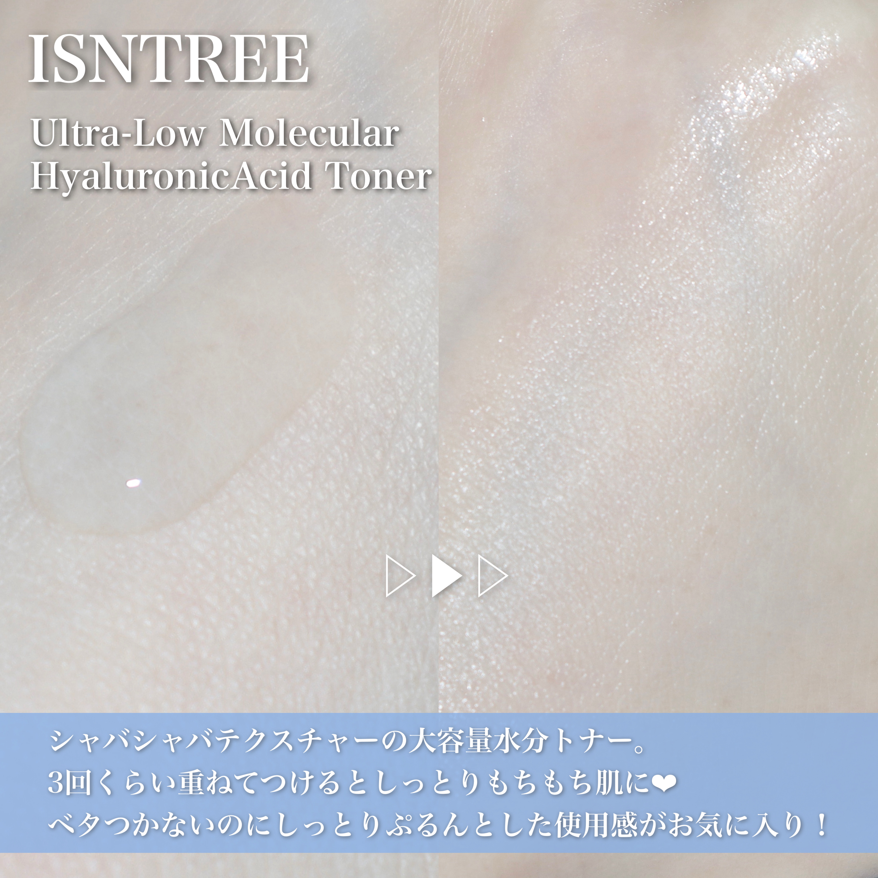 #PRisntree@isntree_jp超低分子ヒアルロン酸トナー超低分子ヒアルロン酸ジンク水分トナーたった3秒で届く!?超低分子ヒアルロン酸トナー✨素早く馴染んでしっとり💕インナードライ肌や乾燥肌の方にもおすすめ💫超低分子なので水のように...