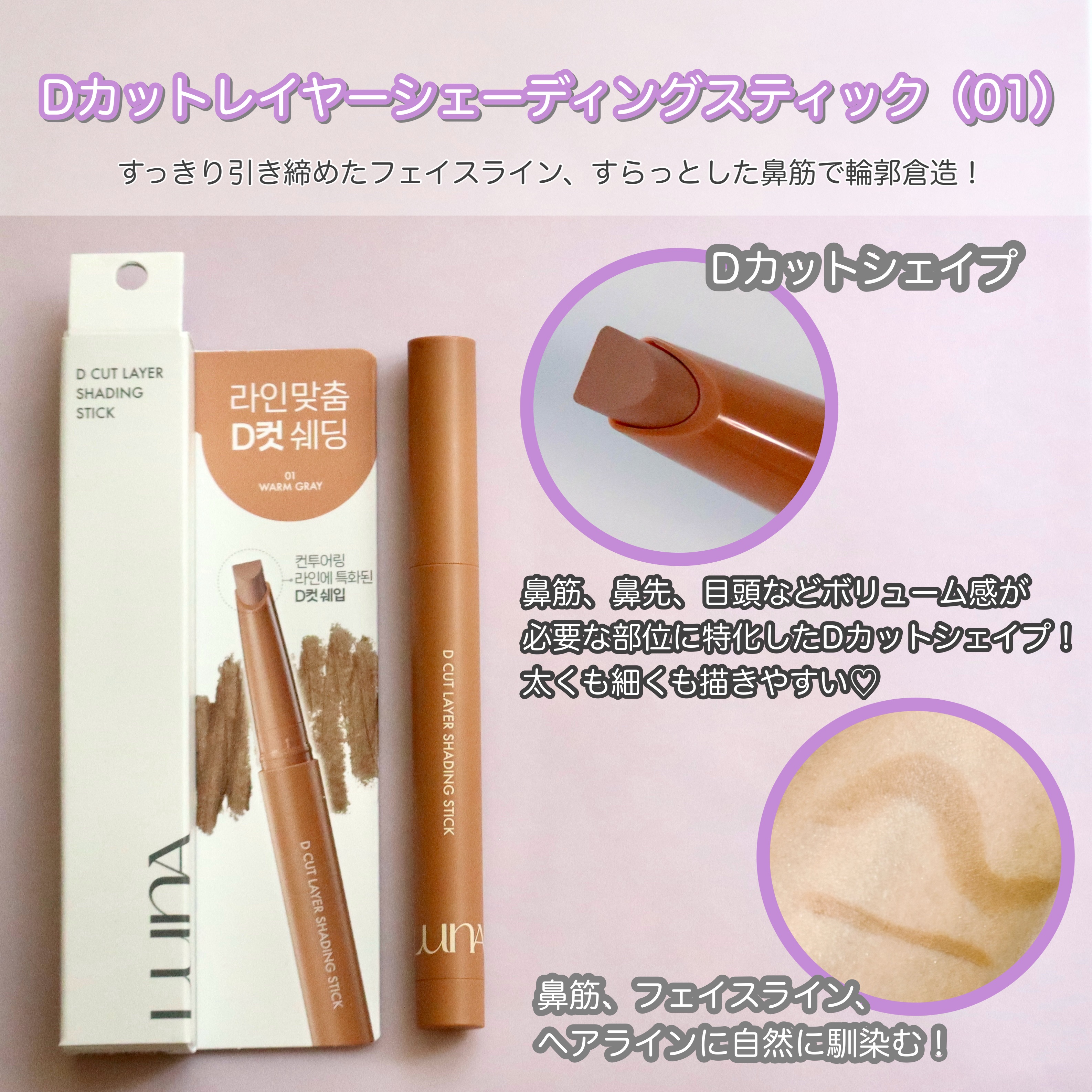 🩵Luna🫧ブラーカバークッション🫧Dカットレイヤーシェーディングスティック🫧Dカットレイヤーハイライタースティックシェーディング、ハイライタースティックが新発売✨どちらも使いやすいDカットシェイプ❕ハイライトカラーはソフトピンクで可愛いです...