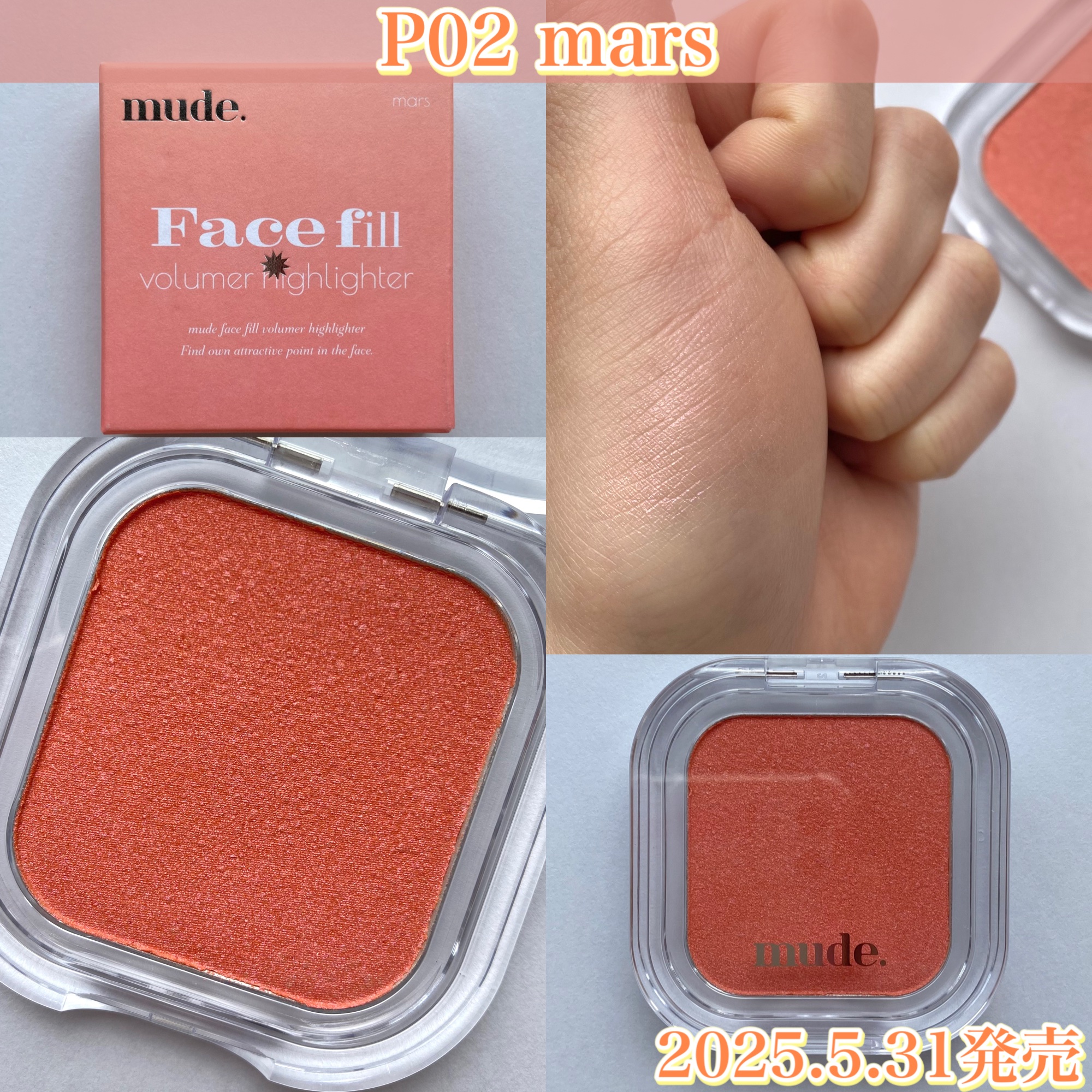 mudeフェイスフィルボリューマーハイライターM01/M02/P01/P02/P03/P04/P05/P06mudeのフェイスフィルボリューマーハイライターが新発売!マットハイライトとラメハイライトの2種類展開で、気分やシーンに合わせて自由に...
