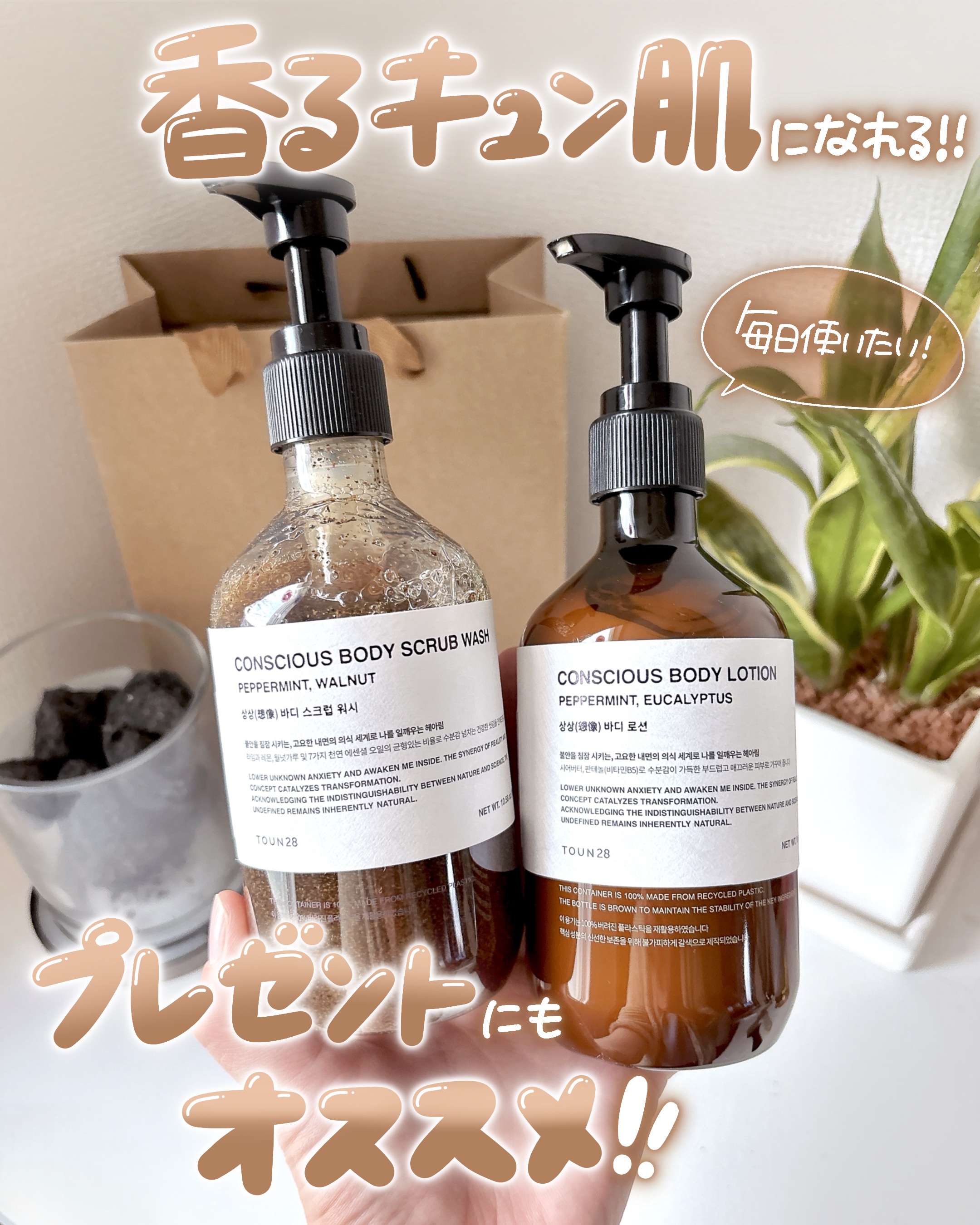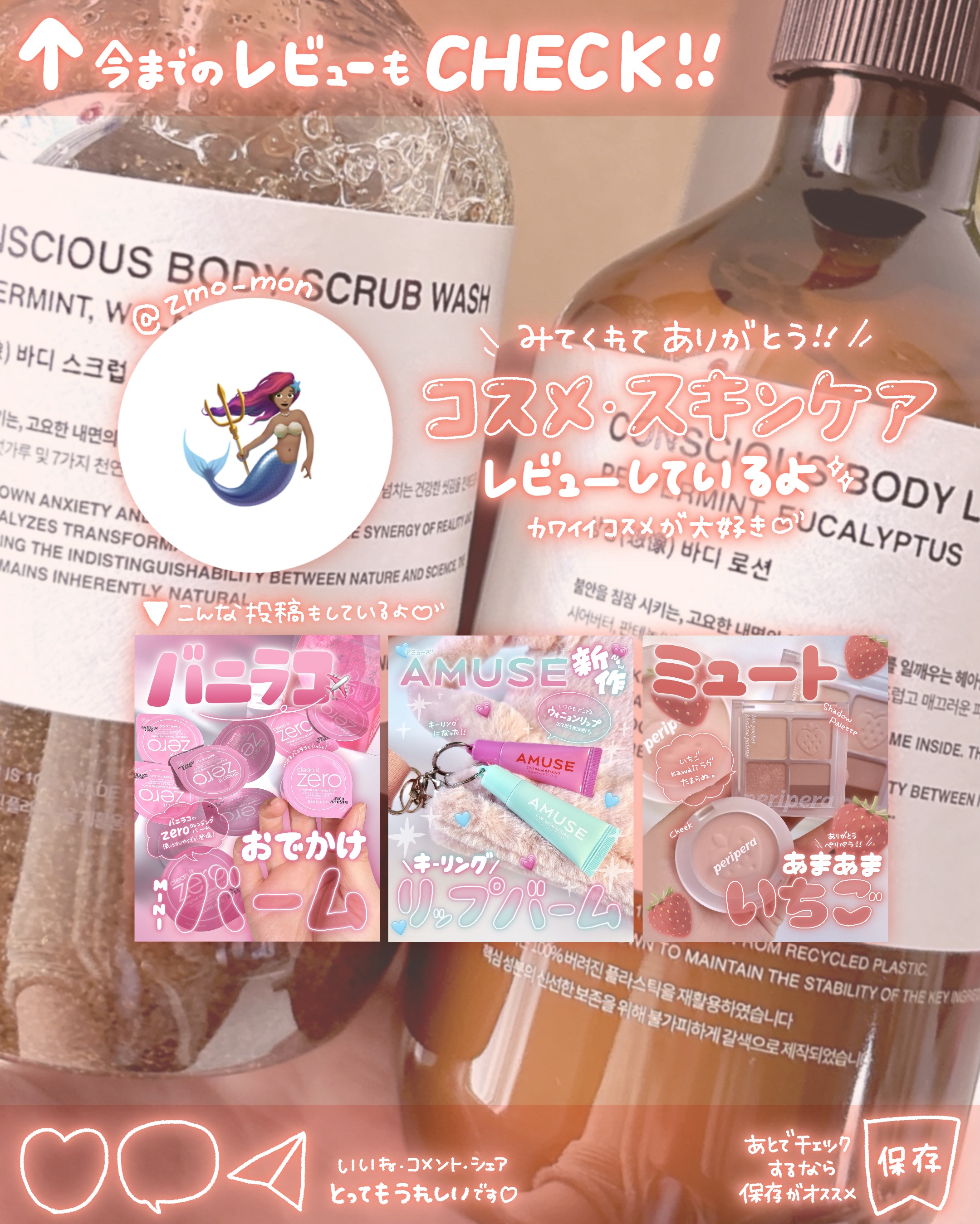 低刺激で角質ケアが可能なスクラブ×ウォッシュ 9つの天然エッセンシャルオイル配合 フルーティーなシトラスの香りでリラックスできるバスタイムに💗 ほんとに優しい洗い心地がお気に入り😍