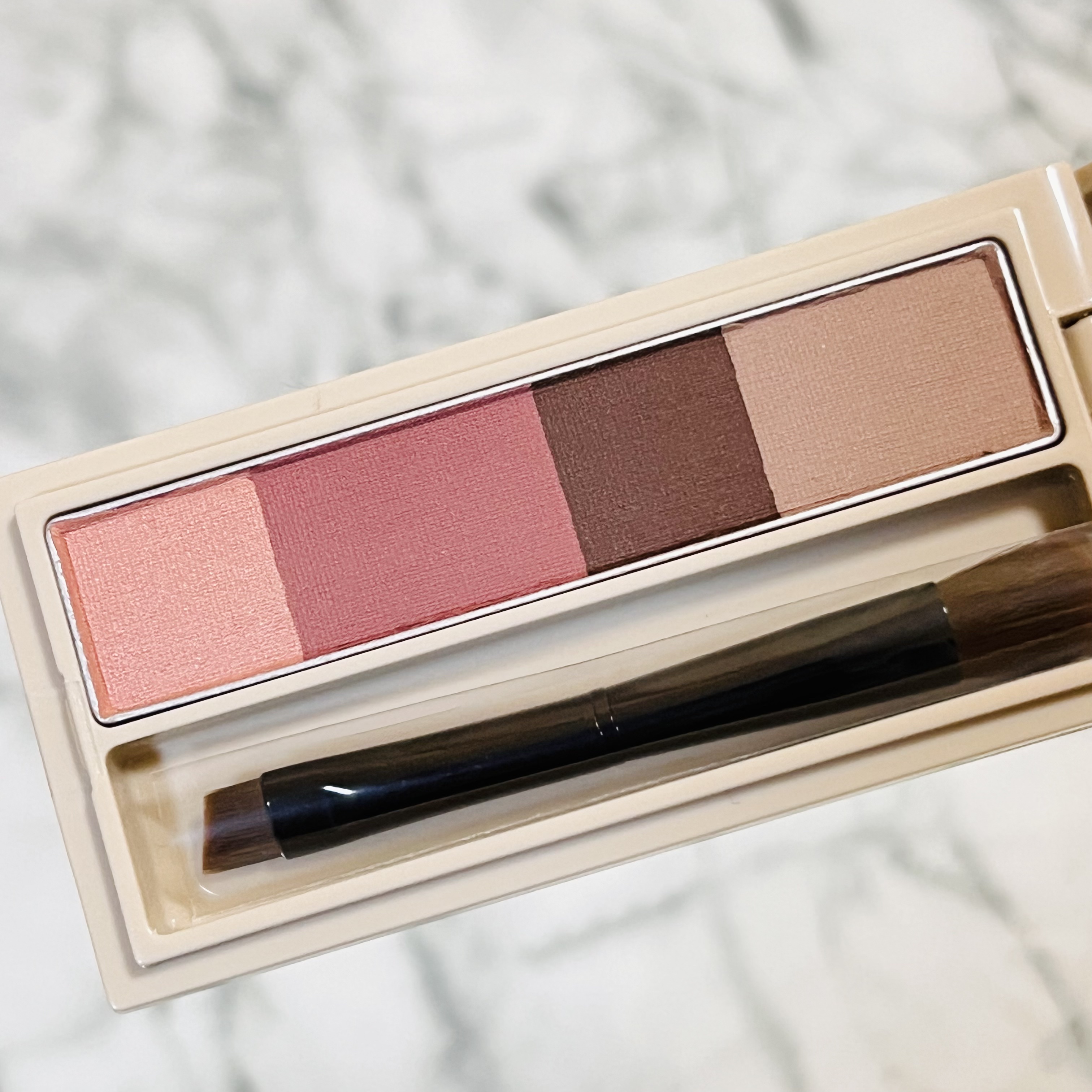 今回のテーマは“Theater in the Sky”(天空の劇場) 多彩な表情を見せる幻想的な空をイメージして 美しい色と光を溶け合わせ、影を含んだ輝きを重ねて 魅力的な目元を演出する4色セットアイシャドウ だそうです✨ 🌸①はパール感の綺麗な明るいシアーピンク まぶたのくすみをパッと飛ばしてくれるようなカラー 🌸③は彩度の高い青みのピンクパープル ツヤ感が綺麗な大人っぽい色気のあるカラー 薄くボカシて使うと可愛らしい雰囲気にもなるので使い勝手が良い色味 🌸④はピンクみのある明るめのブラウン ライン状に引いて締め色にしても使えそう こちらもツヤ感ありで重くなりすぎないブラウンカラー ホリデーシーズンはもちろん、使い方次第で季節問わず使えるので お気に入りのパレットの一つです🥰