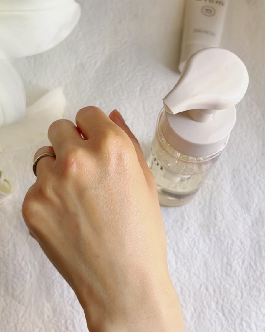 タオルドライ後、500円玉大を髪の根本から毛先へ、ミディアムなので2回(500円玉2個分)なじませています サラサラの水のようなテクスチャーで、濡れた髪にもスーッとなじむので使いやすい オイルのようにベタついたり、ヌルヌルしたりしないので、根本からかきあげながら指を通して毛先にもみこむように使っても全然イヤじゃない オイルなどだと基本毛先から中間までしかなじませられないけれど、これは根本からつけられて、地肌もべたつくこともないから使いやすい 乾かしたあとの髪はサラサラ 乾くまでの時間も少し早いのかもしれない ただ初めて使ったときは香りの強さにビックリしました 私の場合1回目では良さがわからず、使い続けていくうちに髪がサラサラ+ストンとまとまって、良さを実感する事ができました 今ではドライヤーで乾かしたあとの仕上がり、髪がベタつかない使用感などが気に入り、アウトバストリートメントのスタメン入りとなりました