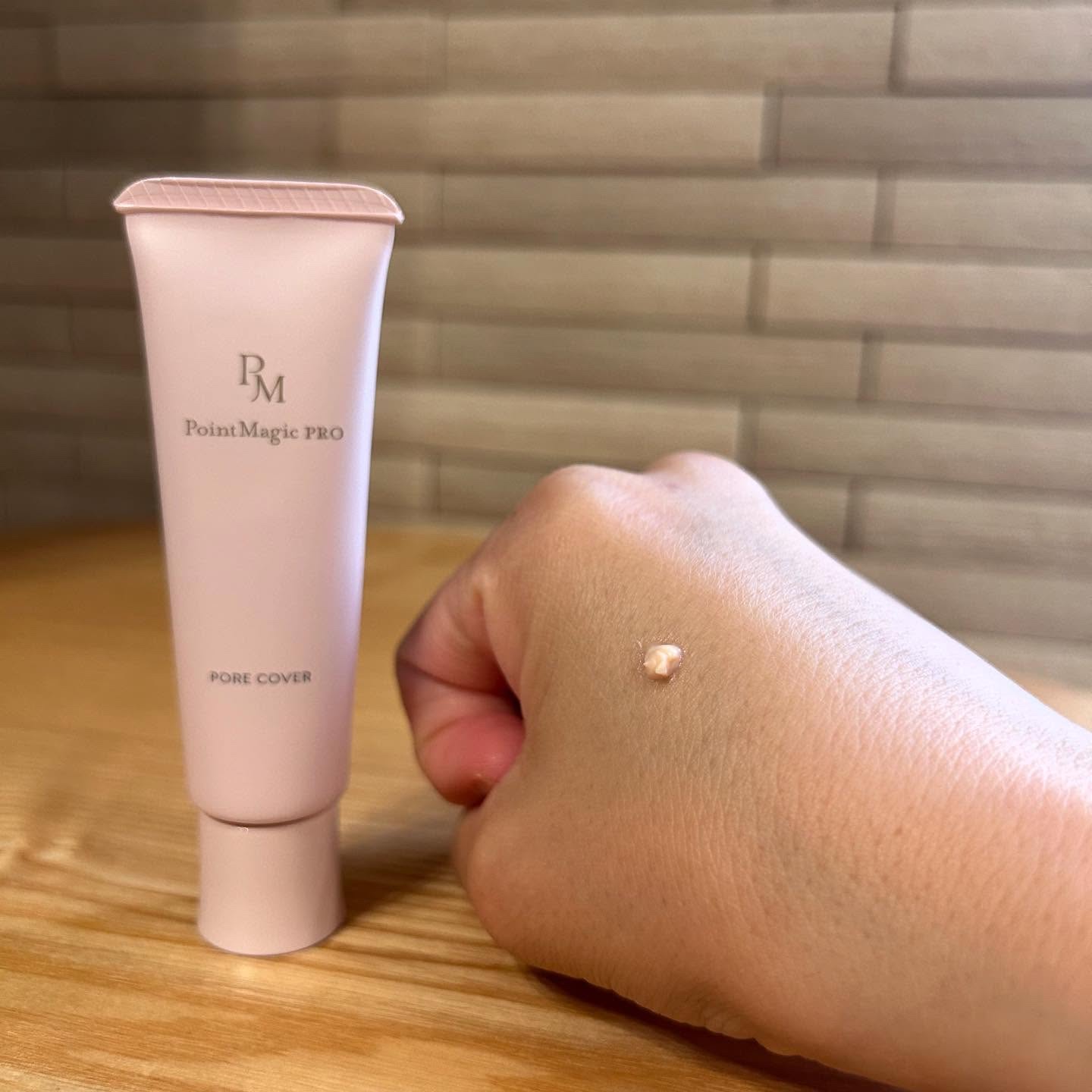 ポイントマジックPROの、ポアカバーをお試し🍑パテのような少しかためのテクスチャーで、毛穴を埋めてすりガラスみたいな透明セミマット肌に🧖🏻♀️スキンケアの後に使って、その後ベースメイクすると綺麗に仕上がる!少し扱いが難しいけど、少量を指でく...