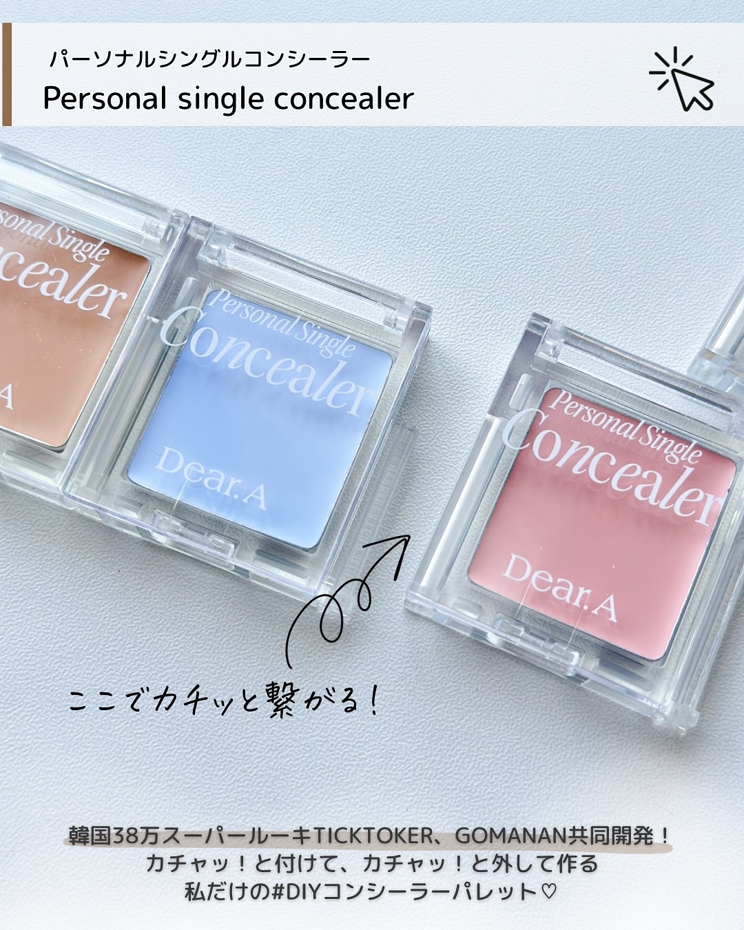 。・゚・。。・゚・。。・゚・。。・゚・。・゚・。Dear.APersonalSingleConcealer3.MatteBeige6.MatchaGreen7.BloomingPink8.BlueHaze使いたい色だけを組み合わせられる、私だ...
