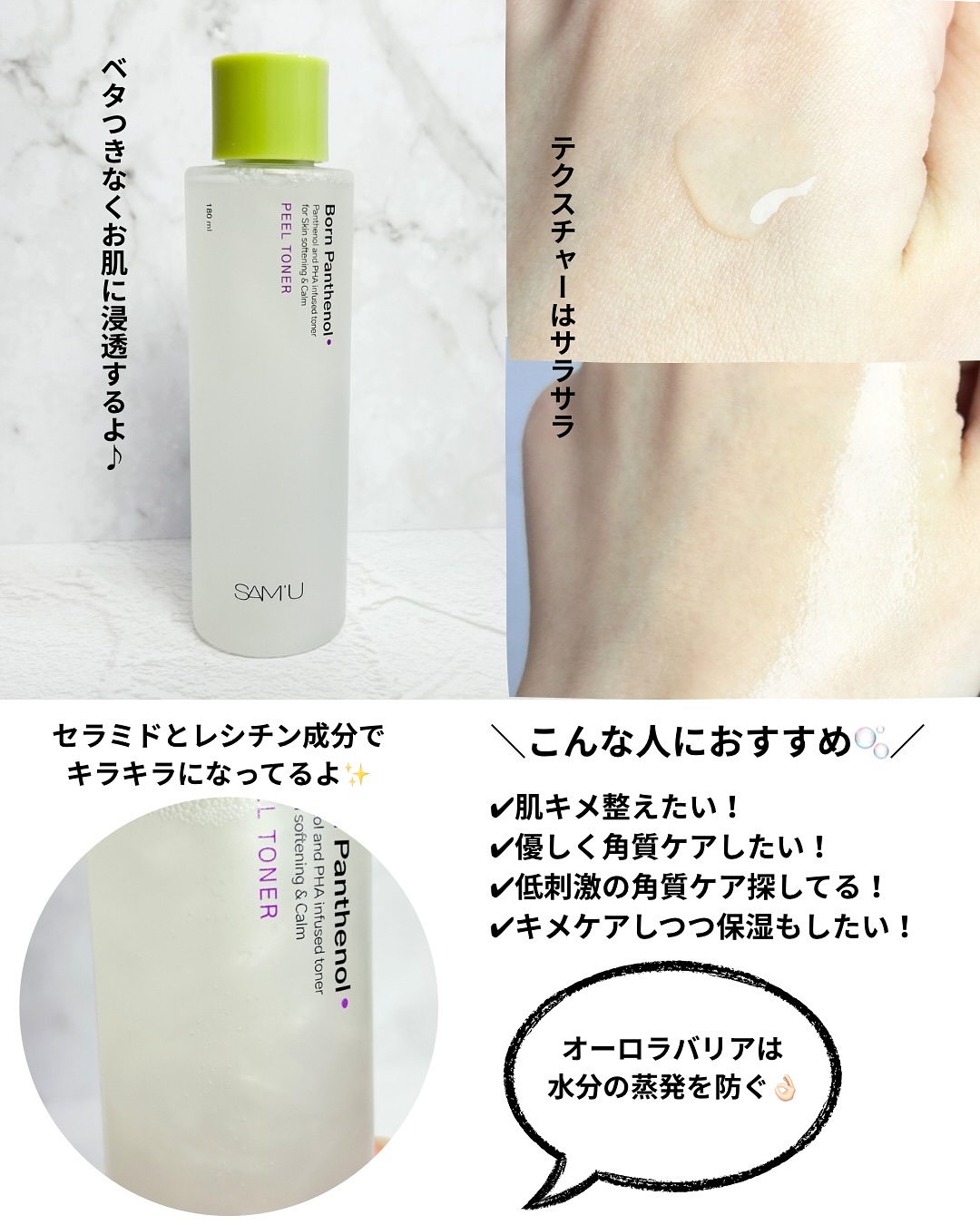 サミュ(@sam_u_jp)さんのアンバサダーを務めております!今回は【ボーンパンテノールピールトナー&トゥートゥーセラム】を使ってました✨️パンテノール配合のトナーが、角質を優しく整え、滑らかな肌へ導いてくれる✨️PHA成分が、穏やかな角質...