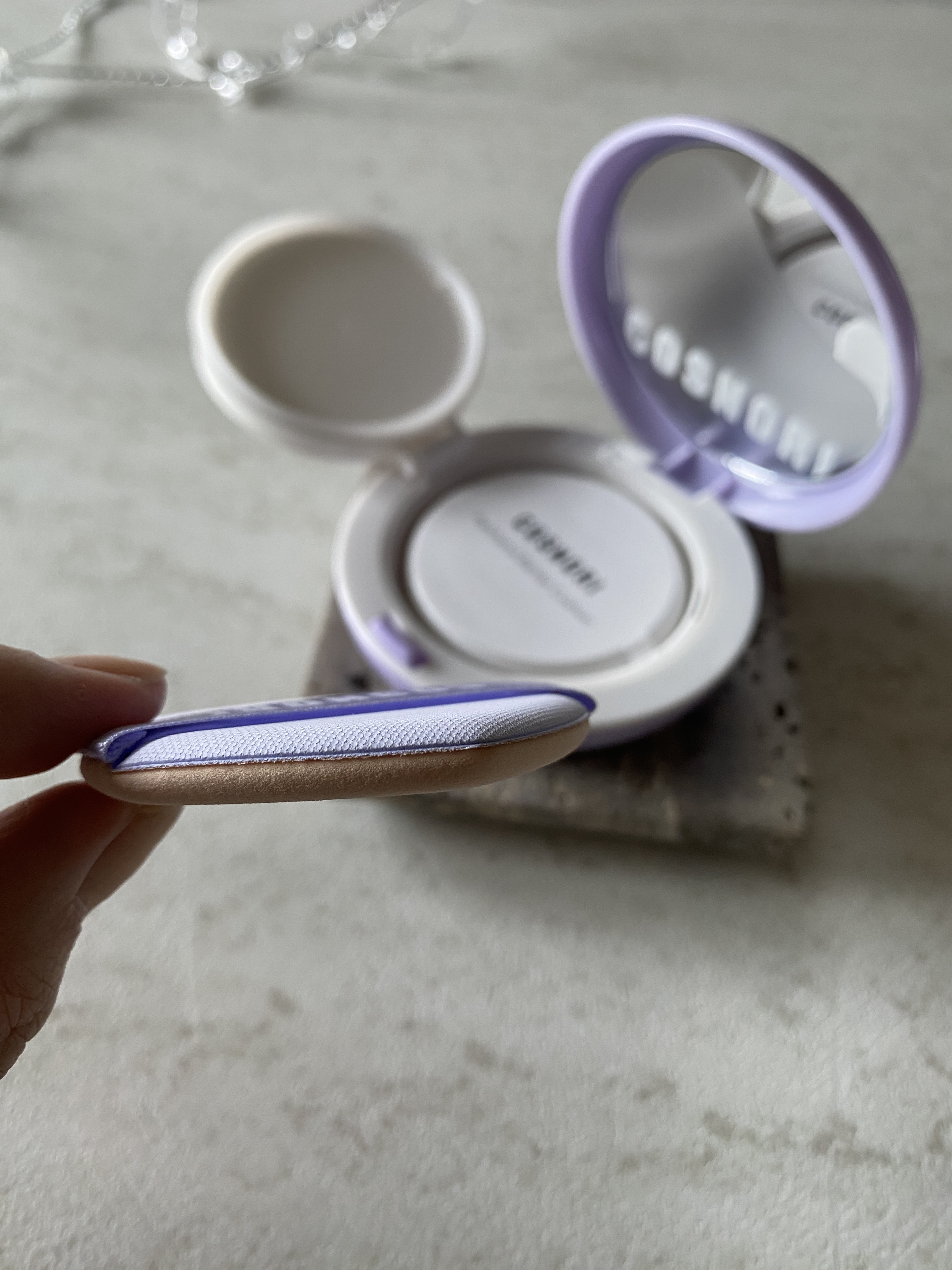 12種のスキンケア成分と水分量45%配合で保湿力が高く、肌につけた瞬間のひんやりとして心地良い。 そしてテクニシャンパフと呼ばれる可愛いミニパフは、特徴として太いバンドが指とパフを密着させ人差し指にフィットするから、気になる小鼻周り、目の下のクマ・シミ・色ムラ・くすみ・毛穴などを素早くピンポイントでお直し出来ます。 02はナチュラルベージュで肌の悩みをカバーするのに適してます。