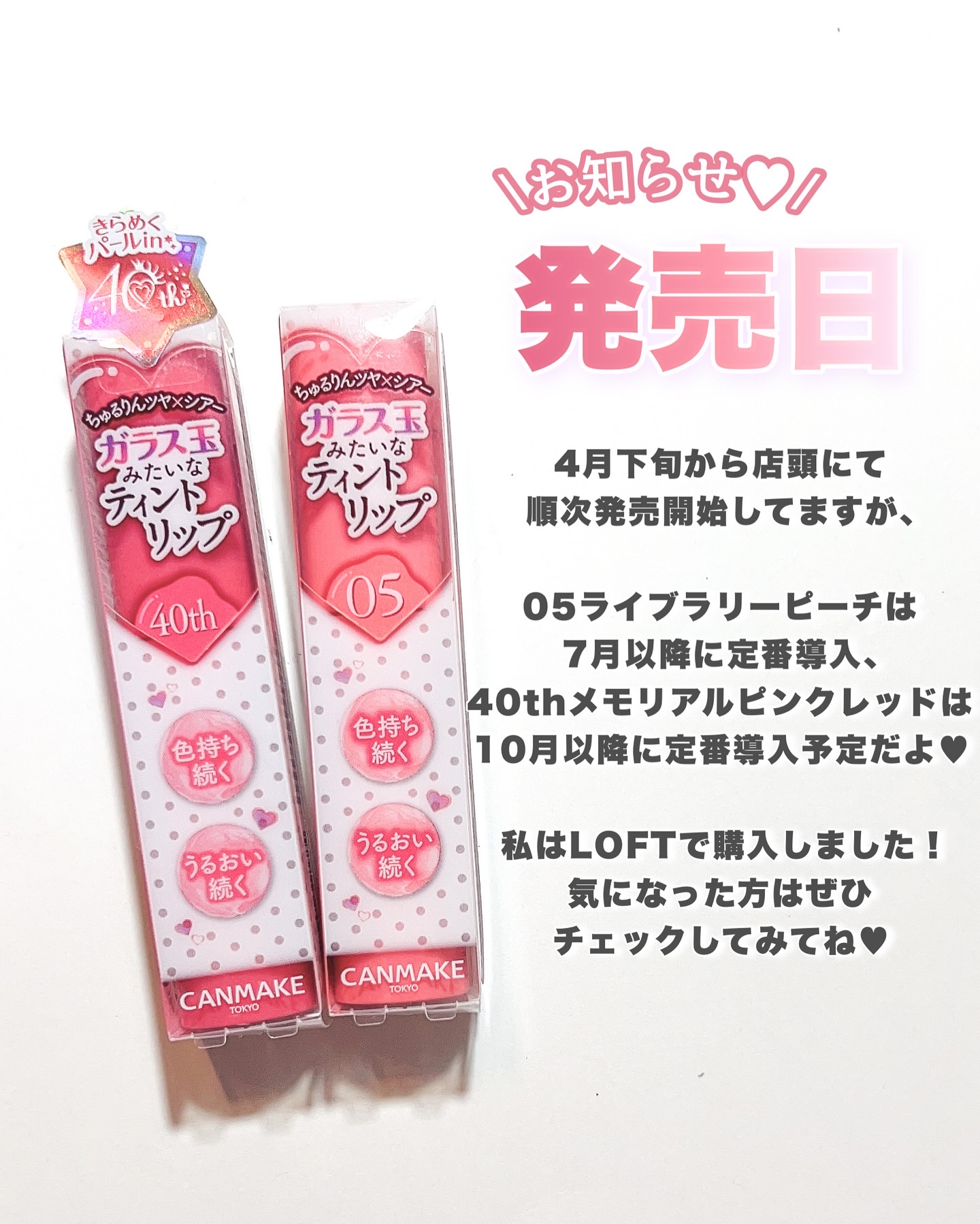 CANMAKE40周年記念カラー🩷ガラス玉のようなちゅるりんとしたツヤが特徴のグラスティントシロップから、キャンメイク誕生40周年を記念した限定カラーが登場❤️“[40th]メモラブルピンクレッド”はゴールド&レッドパールを配合した、ほんのり...