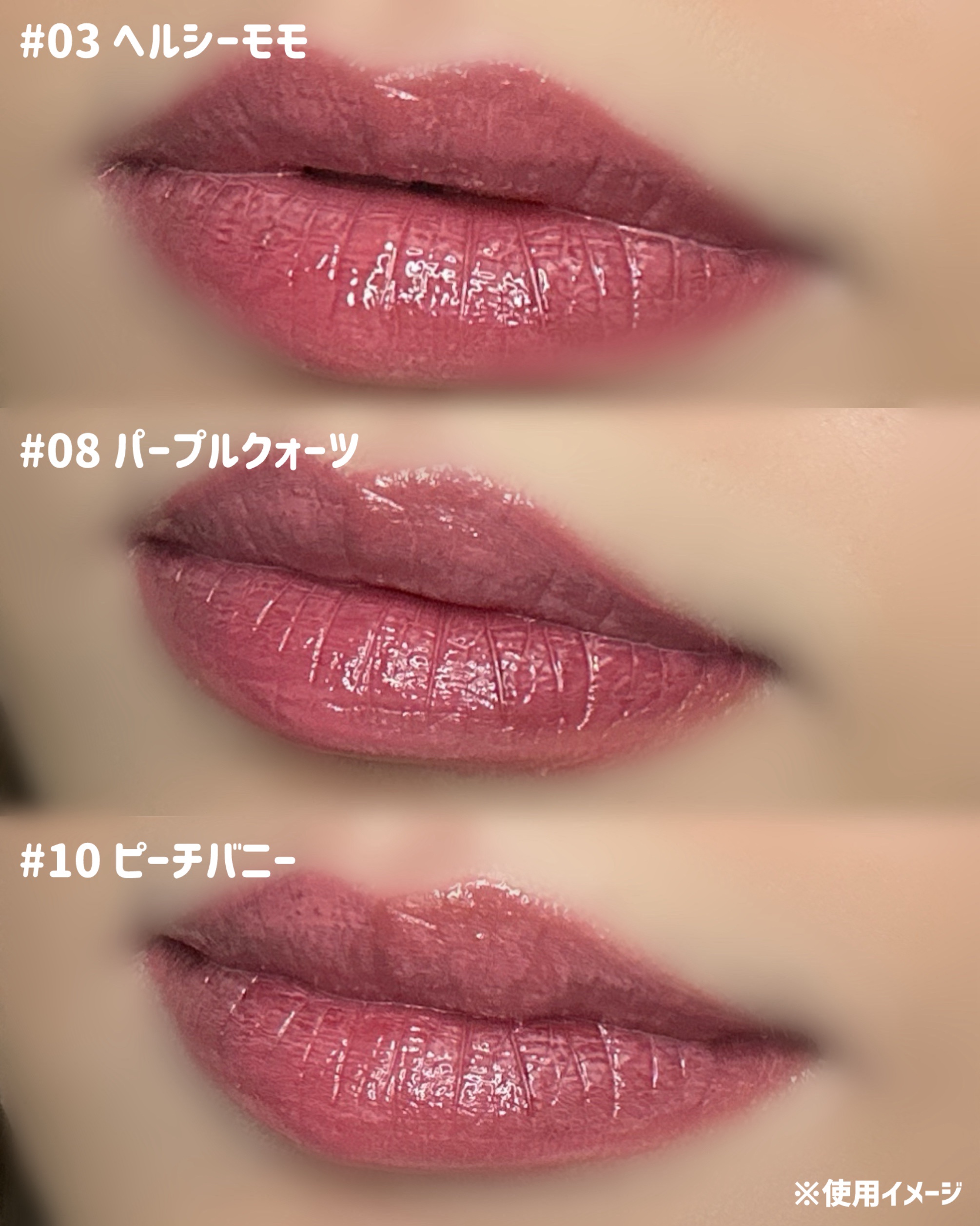 - <01 ラヴィアンコーラル> 精製水、ジフェニルジメチコン、リンゴ酸ジイソステアリル、ビスジグリセリルポリアシルアジペート-2、水添ポリイソブテン、ジグリセリン、セチルPEG/PPG-10/1ダイメチコン、DPG、イソステアリン酸ソルビタン、ポリソルベート60、オクチルドデカノール、ペンチレングリコール、グリセリン、二酸化チタン、セテアレス-20、アクリル酸ヒドロキシエチル/ナトリウムアクリロイルジメチルタウリン酸共重合体フェノキシエタノール、スクアラン、ポリグリセリン-3、香料、ステビオシド、黄色4号、エチルヘキシルグリセリン、赤色227号、トリ(カプリル/カプリン酸)グリセリル、赤色104号(1)、トコフェリルアセテート、黄色5 号、ブリリアントブルーFCF、マンゴー果実エキス、リンゴエキス <06 フィグデュー> 水、ジフェニルジメチコン、リンゴ酸ジイソステアリル、ポリアシルアジピン酸ビス-ジグリセリル-2、水添ポリイソブテン、ジグリセリン、セチルPEG/PPG-10/1ジメチコン、ジプロピレングリコール、イソステアリン酸ソルビタン、ポリソルベート60、オクチルドデカノール、ペンチレングリコール、グリセリン、二酸化チタン(CI) 77891)、セテアレス-20、アクリル酸ヒドロキシエチル/アクリロイルジメチルタウリンナトリウムコポリマー、スクワラン、フェノキシエタノール、ポリグリセリン-3、香料、ステビオシド、赤28(CI 45410)、黄6(CI 15985)、黄5(CI 19140)、エチルヘキシルグリセリン、レッド 33 (CI 17200)、カプリル酸/カプリン酸トリグリセリド、酢酸トコフェロール、ブルー 1 (CI 42090)、Mangifera Indica (マンゴー) 果実エキス、Pyrus Malus (リンゴ) 果実エキス <12 日曜日> 水、ジフェニルジメチコン、リンゴ酸ジイソステアリル、ビスジグリセリルポリアシルアジペート-2、水添ポリイソブテン、ジグリセリン、セチルPEG/PPG-10/1ジメチコン、DPG、イソステアリン酸ソルビタン、ポリソルベート60、オクチルドデカノール、ペンチレングリコール、グリセリン、セテアレス-20、(アクリル酸ヒドロキシエチル/アクリロイルジメチルタウリンNa)コポリマー、フェノキシエタノール、スクワラン、ポリグリセリン-3、ステビオシド、香料、エチルヘキシルグリセリン、トリ(カプリル酸/カプリン酸)グリセリル、酢酸トコフェロール、マンゴー果実エキス、リンゴ果実エキス、酸化チタン、酸化鉄、黄4、赤227、赤104(1)、黄5、青1 <【旧】02 漢江ブリーズ> 水、ジフェニルジメチコン、リンゴ酸ジイソステアリル、ポリアシルアジピン酸ビス-ジグリセリル-2、水添ポリイソブテン、ジグリセリン、セチルPEG/PPG-10/1ジメチコン、ジプロピレングリコール、イソステアリン酸ソルビタン、ポリソルベート60、オクチルドデカノール、ペンチレングリコール、グリセリン、二酸化チタン(CI) 77891)、セテアレス-20、アクリル酸ヒドロキシエチル/アクリロイルジメチルタウリンナトリウムコポリマー、フェノキシエタノール、スクワラン、イエロー6 (CI 15985)、ポリグリセリン-3、香料、ステビオシド、エチルヘキシルグリセリン、レッド33 (CI 17200)、レッド28 (CI 45410)、トリカプリル/カプリン酸グリセリド、酢酸トコフェロール、ブルー 1 (CI 42090)、Mangifera Indica (マンゴー) 果実エキス、Pyrus Malus (リンゴ) 果実エキス <【旧】05 ヒップジロー> 水、ジフェニルジメチコン、リンゴ酸ジイソステアリル、ポリアシルアジピン酸ビス-ジグリセリル-2、水添ポリイソブテン、ジグリセリン、セチルPEG/PPG-10/1ジメチコン、ジプロピレングリコール、イソステアリン酸ソルビタン、ポリソルベート60、オクチルドデカノール、ペンチレングリコール、グリセリン、二酸化チタン(CI) 77891)、セテアレス-20、アクリル酸ヒドロキシエチル/アクリロイルジメチルタウリンナトリウムコポリマー、スクワラン、フェノキシエタノール、イエロー6 (CI 15985)、ポリグリセリン-3、香料、ステビオシド、エチルヘキシルグリセリン、レッド33 (CI 17200)、カプリル酸/カプリン酸トリグリセリド、酢酸トコフェロール、ブルー 1 (CI 42090)、Mangifera Indica (マンゴー) 果実エキス、Pyrus Malus (リンゴ) 果実エキス <【旧】09 ソウル ソウル> 水、ジフェニルジメチコン、マレートジソステアル、ビスジグリセリルポリシルダイピン-2、水素化ポリイソブテン、ディグリセリン、セチルペグ/PPG-10/1ジメチコン、ジップロピレングリコール、ソルビトン等酸塩、ポリソルベ酸60、オクティロドデドカン、ペンシェルン、ペントリン酸塩、ペントリ酸塩、ペンシュレン 二酸化チタン (CI 77891)、アクリル酸ヒドロキシエチル/アクリロイルジメチルタウリン酸ナトリウムコポリマー、フェノキシエタノール、スクワラン、イエロー6 (CI 15985)、ポリグリセリン-3、香料、ステビオシド、エチルヘキシルグリセリン、レッド33 (CI 17200)、カプリル酸/カプリン酸トリグリセリド、酢酸トコフェロール、ブルー 1 (CI 42090)、Mangifera Indica (マンゴー) 果実エキス、Pyrus Malus (リンゴ) 果実エキス <【旧】10 朝イチジク> 水、ジフェニルジメ