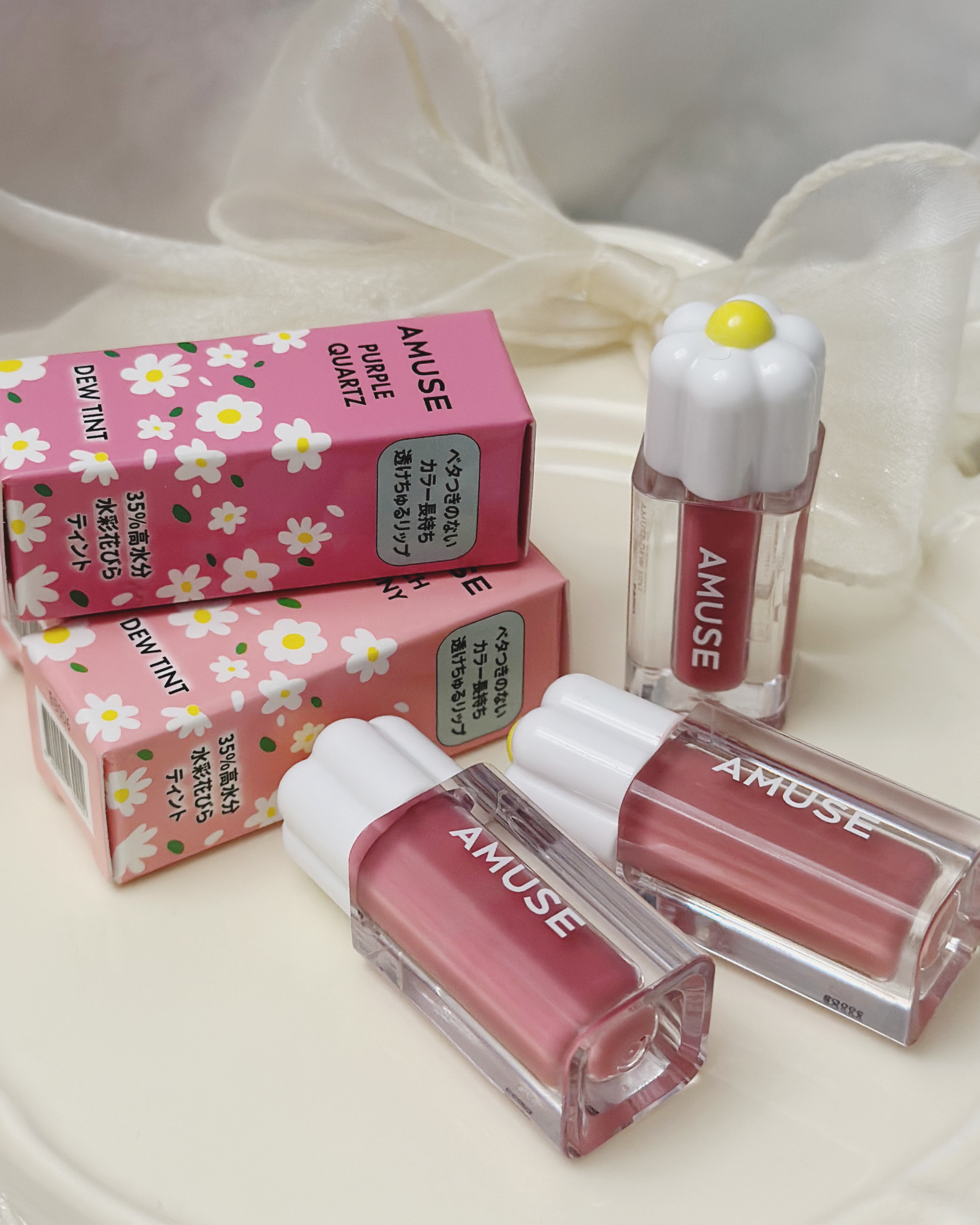 @amuse.jpかわいい.˚εїз⁺˚✿˖°上の分部がお花Designなってるʚ🌷ɞ⋆。˚⋆35%高水分ウォーターテクスチャーで透明感もあって透けチュルリップそんな、AMUSEの中でも大人気で長時間持つリップデューティントがミニサイズが登場...
