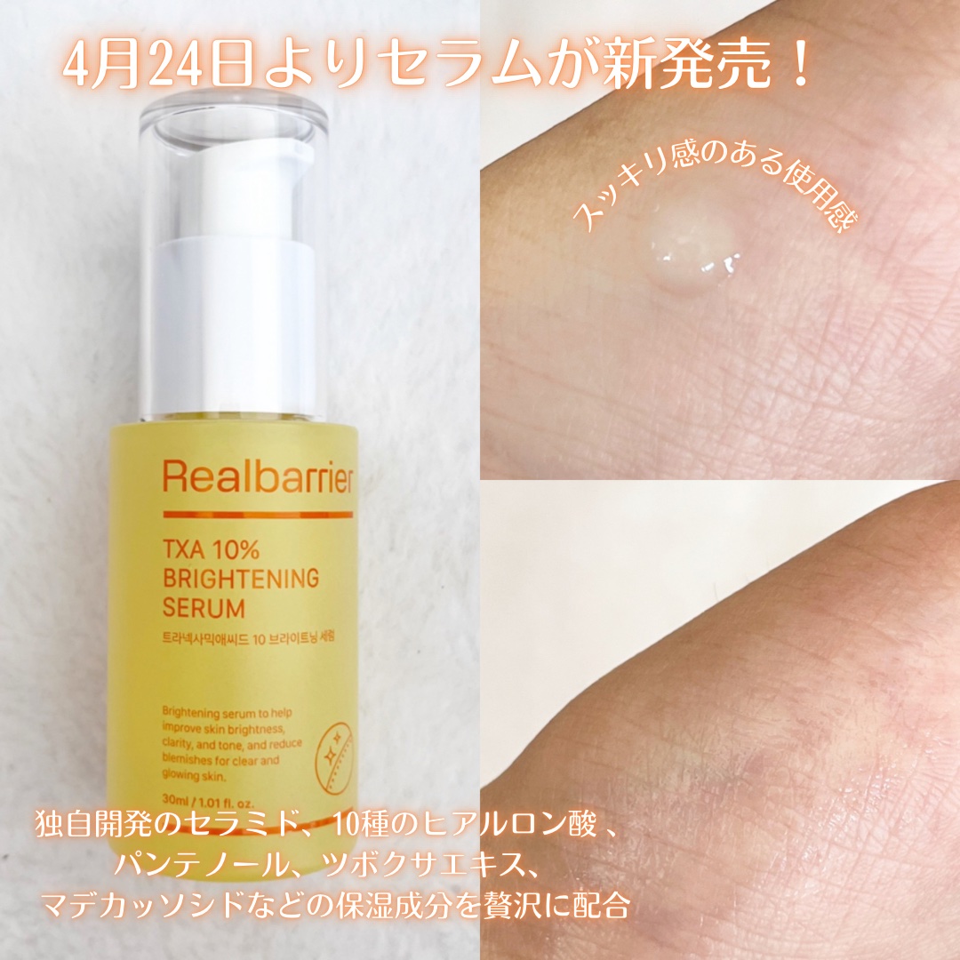 Realbarrier TXA10%ブライトニングセラム30mlいつもお世話になってるリアルバリア🧡大好評だったシートマスクに続き、4月24日よりセラムが新発売したの!トラネキサム酸10%、ナイアシンアミド、グルタチオンリポソーム、ビタ5リポ...