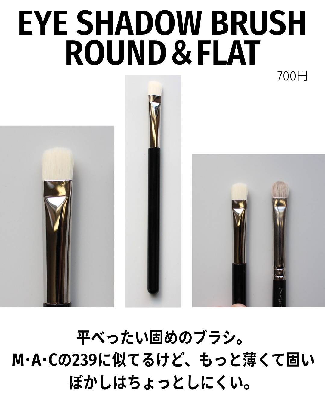 ダイソーのスタイリッシュ版のお店「スタンダードプロダクツ」で売ってるメイクブラシ、なんとあの熊野筆なの!さすが全くチクチクしない。取り急ぎ5本買ってみて、手持ちの形が似てるものと比較もしてみたよ。特にEYESHADOWBRUSHPOINTED...