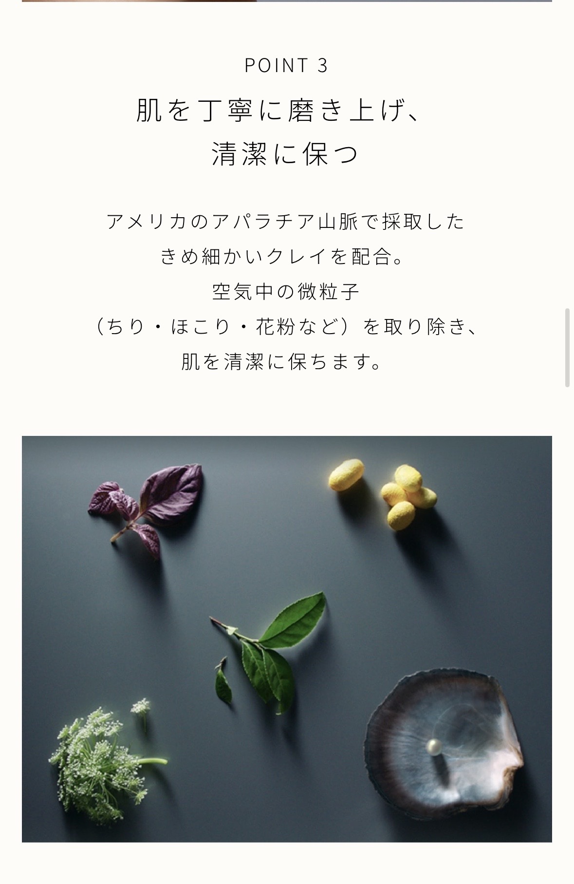 - 厳選された天然由来クレイと植物由来の吸着テクノロジーによって余分な皮脂を吸着し、毛穴の奥の黒ずみやざらつきをすみずみまで取り除くスクラブ洗浄料です。 肌に必要なうるおいは残しながら、シルクのように艶やかな、なめらかで明るい肌へ磨き上げます。