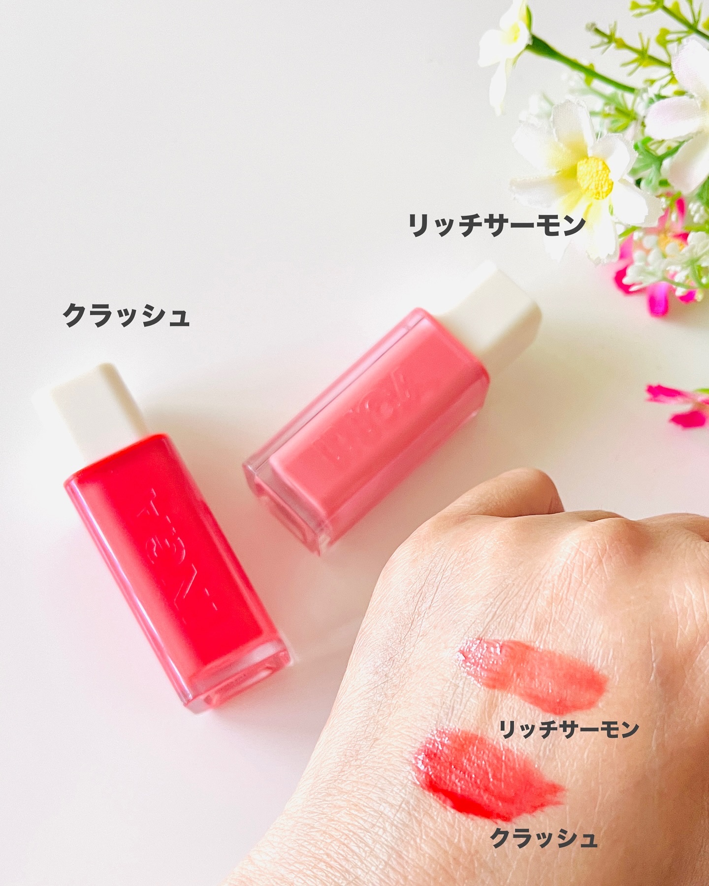 - <01 ベアピーチ(Bare Peach)> 水、ジフェニルジメチコン、ジイソステアリルマレート、ビス-ジグリセリルポリアシルアジペート-2、ビス-ベヘニル/イソステアリル/フィトステリルダイマーダイリノレイルダイマー、水素添加ポリイソブチレン、ジグリセリン、ジプロピレングリコール、セチルPEG/PPG-10/1ジメチコン、ソルビタンイソステアレート、ポリソルベート60、ペンチレングリコール、オクチルドデカノール、酸化チタン (CI 77891)、セテアレツ-20、ヒドロキシエチルアクリレート/ナトリウムアクリロイルジメチルタウレート共重合体、フェノキシエタノール、スクワラン、ステビオシド、香料、イエロー5 (CI 19140)、エチルヘキシルグリセリン、イエロー6 (CI 15985)、レッド33 (CI 17200)、水酸化アルミニウム、アンモニウムポリアクリレート、ブチレングリコール、ブルー1 (CI 42090)、ペンタエリスリチルテトラ-ジ-t-ブチルヒドロキシヒドロシンナメート <02 リッチサーモン(Rich Salmon)> 水、ジフェニルジメチコン、ジイソステアリルマレート、ビス-ジグリセリルポリアシルアジペート-2、ビス-ベヘニル/イソステアリル/フィトステリルダイマーダイリノレイルダイマー、水素添加ポリイソブチレン、ジグリセリン、ジプロピレングリコール、セチルPEG/PPG-10/1ジメチコン、ソルビタンイソステアレート、ポリソルベート60、ペンチレングリコール、オクチルドデカノール、酸化チタン (CI 77891)、セテアレツ-20、ヒドロキシエチルアクリレート/ナトリウムアクリロイルジメチルタウレート共重合体、フェノキシエタノール、スクワラン、ステビオシド、イエロー6 (CI 15985)、レッド33 (CI 17200)、香料、エチルヘキシルグリセリン、水酸化アルミニウム、アンモニウムポリアクリレート、イエロー5 (CI 19140)、ブチレングリコール、ペンタエリスリチルテトラ-ジ-t-ブチルヒドロキシヒドロシンナメート <03 ロージーローズ(Rosy Rose)> 水、ジフェニルジメチコン、ジイソステアリルマレート、ビス-ジグリセリルポリアシルアジペート-2、ビス-ベヘニル/イソステアリル/フィトステリルダイマーダイリノレイルダイマー、水素添加ポリイソブチレン、ジグリセリン、ジプロピレングリコール、セチルPEG/PPG-10/1ジメチコン、ソルビタンイソステアレート、ポリソルベート60、ペンチレングリコール、オクチルドデカノール、セテアレツ-20、酸化チタン (CI 77891)、ヒドロキシエチルアクリレート/ナトリウムアクリロイルジメチルタウレート共重合体、スクワラン、フェノキシエタノール、ステビオシド、イエロー5 (CI 19140)、レッド33 (CI 17200)、香料、エチルヘキシルグリセリン、レッド28 (CI 45410)、水酸化アルミニウム、アンモニウムポリアクリレート、ブチレングリコール、イエロー6 (CI 15985)、ブルー1 (CI 42090)、ペンタエリスリチルテトラ-ジ-t-ブチルヒドロキシヒドロシンナメート <04 クラッシュ(Crush)> 水、ジフェニルジメチコン、ジイソステアリルマレート、ビス-ジグリセリルポリアシルアジペート-2、ビス-ベヘニル/イソステアリル/フィトステリルダイマーダイリノレイルダイマー、水素添加ポリイソブチレン、ジグリセリン、セチルPEG/PPG-10/1ジメチコン、ジプロピレングリコール、ソルビタンイソステアレート、ポリソルベート60、ペンチレングリコール、オクチルドデカノール、酸化チタン (CI 77891)、セテアレツ-20、ヒドロキシエチルアクリレート/ナトリウムアクリロイルジメチルタウレート共重合体、スクワラン、フェノキシエタノール、ポリグリセリン-3、ステビオシド、香料、エチルヘキシルグリセリン、イエロー6 (CI 15985)、レッド33 (CI 17200)、レッド28 (CI 45410)、ブルー1 (CI 42090)、イエロー5 (CI 19140) <05 スプラッシュ(Splash)> 水、ジフェニルジメチコン、ジイソステアリルマレート、ビス-ジグリセリルポリアシルアジペート-2、ビス-ベヘニル/イソステアリル/フィトステリルダイマーダイリノレイルダイマー、水素添加ポリイソブチレン、ジグリセリン、セチルPEG/PPG-10/1ジメチコン、ジプロピレングリコール、ソルビタンイソステアレート、ポリソルベート60、ペンチレングリコール、オクチルドデカノール、酸化チタン (CI 77891)、セテアレツ-20、ヒドロキシエチルアクリレート/ナトリウムアクリロイルジメチルタウレート共重合体、スクワラン、フェノキシエタノール、ポリグリセリン-3、ステビオシド、香料、エチルヘキシルグリセリン、イエロー6 (CI 15985)、レッド33 (CI 17200)、イエロー5 (CI 19140)、ブルー1 (CI 42090) <06 ヌードジンジャー(Nude Ginger)> 水、ジフェニルジメチコン、ジイソステアリルマレート、ビス-ジグリセリルポリアシルアジペート-2、ビス-ベヘニル/イソステアリル/フィトステリルダイマーダイリノレイルダイマー、水素添加ポリイソブチレン、ジグリセリン、セチルPEG/PPG-10/1ジメチコン、ジプロピレングリコール、ソルビタンイソステアレート、ポリソルベート60、ペンチレングリコール、オクチルドデカノール、酸化チタン (CI 77891)、セテアレツ-20