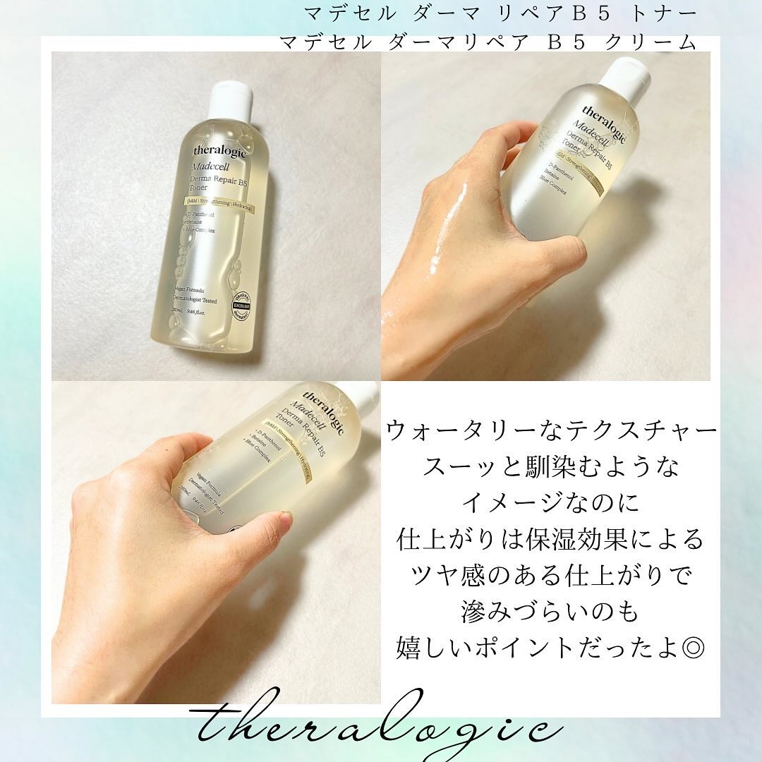 theralogicは韓国トップの皮膚医院『ドクターズ皮膚科』の皮膚科専門医が開発した、スローエイジングヴィーガンダーマコスメティックブランドです。 お肌の水分を121%改善し、肌バリアを整えるインナードライ、敏感肌用保湿トナー。 乾燥肌なこともあり3回ぐらい重ね付けしちゃってるけど、全然ベタつかないし、お肌しっとりもっちりになる💚