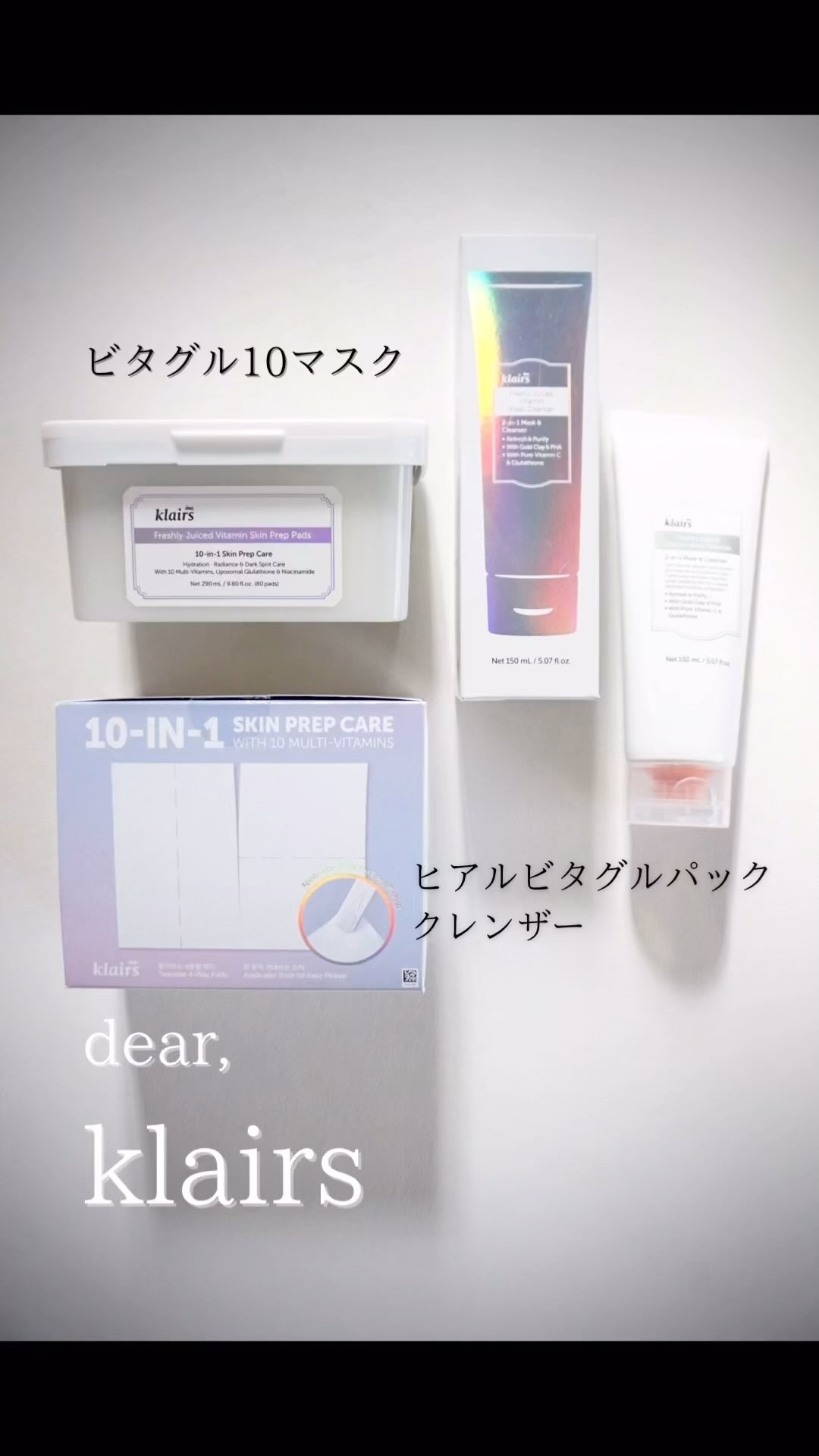 #PR#loveklairsクレアスさま(@klairs_jp)からライン使いにおすすめの2つを頂きました💛💛ビタグル10マスク80枚入りの大容量マスク!4分割できるので、部分パックとしても拭き取りにも使える💫10種のビタミンCや10種ヒアル...