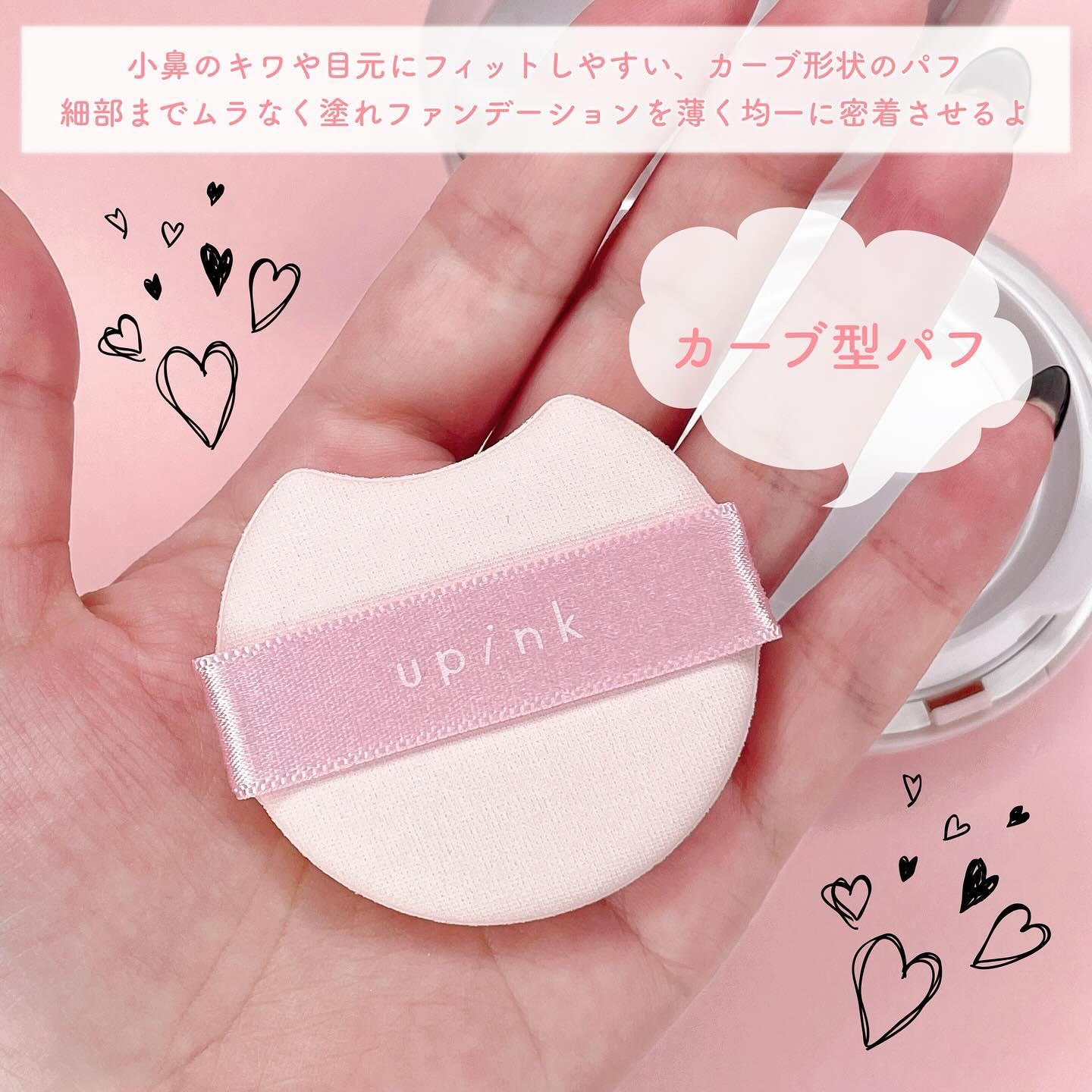 - ◆自然なツヤ肌仕上げ まるで自分の肌が内側から輝いているような光沢感を演出します。 ◆しっとり密着し、崩れにくい 肌の凸凹にぴたっと密着し、塗りたての美しい仕上がりが持続します。 ◆毛穴・色ムラを高カバー 薄く塗っても肌悩みをキレイにカバー。しっかりカバーしながらも、 厚塗り感のない軽い肌を演出します。 ◆カーブ型パフ 小鼻のキワや目元にフィットしやすい、カーブ形状。 細部までムラなく塗れ、ファンデーションを薄く均一に密着させます。 発売を記念してオープンする期間限定のポップアップストア「upink POPUP」では、2024年9月6日(金)より先⾏販売(※1)を実施 ※1 販売数に限りがございます。先⾏販売分完売後の⼊荷の予定はございません。