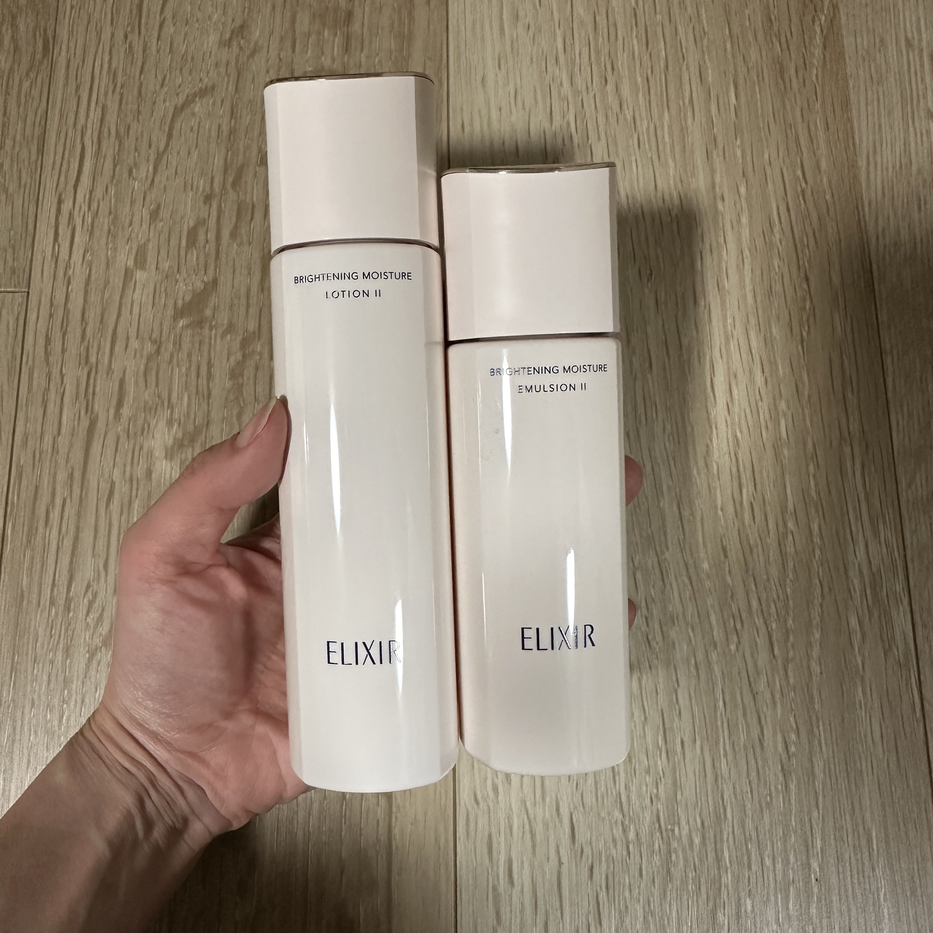 - ■商品特長(医薬部外品) エリクシール 美白※3&エイジングケア※2 世界初の光解析システム※4の知見に着目。 透明感とハリに満ちた「つや玉」続く肌へ導く、薬用美白乳液 ※2 エイジングケアとは、年齢に応じたうるおいケアです。 ※3 美白美白化粧品は、メラニンの生成を抑え、シミ・ソバカスを防ぎます。 ※4 肌からのすべての光を分離計測し、視覚的に詳細に解析できる技術が世界初である。クラリベイト社調べ(2022年9月) ○厳選された美容成分配合で、肌にハリを与えながら、浸透処方で角層深くまでうるおいを届けます。 ○透明感とハリに満ちた「つや玉」が輝き続ける肌へ導きます。 -美白有効成分 4MSK(4-メトキシサリチル酸カリウム塩)配合 -薬用有効成分 グリチルリチン酸ジカリウム(肌あれを防ぐ)配合 -厳選成分 ディープモイストインCP(メリロートエキス、グリセリン:保湿)配合 -コラーゲンGL(水溶性コラーゲン、グリセリン:保湿)配合 -厳選成分 M-バウンサーCP(オトギリソウエキス、グリセリン:ハリ保湿)配合 ○リラックス感のある心地よいアクアフローラルの香りです。 ○乾燥による小じわを目立たなくします。(効能評価試験済み) ○アレルギーテスト済み (全てのかたにアレルギーが起きないというわけではありません)。 ■テクスチャー(使用感) Ⅱ:なめらかにうるおう しっとりタイプ