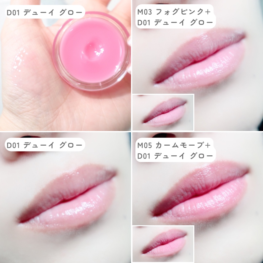 - <D01 デューイグロー> オクチルドデカノール、ジイソステアリルマレート、ビス-ベヘニル/イソステアリル/フィトステリルジメリノール酸ジメリノレイン酸、エチルセルロース、マイクロクリスタリンワックス、合成ワックス、フェノキシエタノール、カプリリルグリコール、シメチコン、エチルヘキシルグリセリン、香料、酸化チタン、赤色202号、精製水、赤色104号(1)、1,2-ヘキサンジオール、ヒアルロン酸ナトリウム、加水分解ヒアルロン酸トリモニウム、アセチル化ヒアルロン酸ナトリウム、加水分解ヒアルロン酸、ヒアルロン酸、加水分解ヒアルロン酸ナトリウム、ヒアルロン酸ナトリウムクロスポリマー、ヒアルロン酸カリウム <H01 トーンアップバーム> カプリル酸/カプリン酸トリグリセリド、オクチルドデカノール、マイカ、ポリグリセリル-2トリイソステアリン酸、ビスジグリセリルポリアシルアジペート-2、酸化チタン、シリカ、C13-15アルカン、合成ワックス、ポリグリセリル-3ポリリシノレイン酸、VP/ヘキサデセンコポリマー、マイクロクリスタリンワックス、合成ミツロウ、ソルビタンイソステアレート、ジステアリルジモニウムヘクトライト、カプリル酸/カプリン酸グリセリズ、カプリリルグリコール、ステアリン酸、香料、BHT <M01 コーラル> イメティコン、ダイメチコンクロスポリマー、トリベヘニン、ビニールダイメティコン/メティコンシルセスキオクセインクロスポリマー、ダイアイソステアリルマレート、ポリグリセリル-2トライアイソステアレート、セティルピージ/ピーピージ-10/1ダイメティコン、トリメチルシロキシシリケート、ポリグリセリル-4アイソステアレート、ココ-カプリレート/カプリレート、1,2-ヘキサンジオール、アイソドデケイン、ポリグリセリル-3ポリリシノリエート、チタンジオキシド、ダイステアーダエモニウムヘクトライト、黄色4号、ソルビタンアイソステアレート、赤色104(1)、ポリヒドロキシステアリックアシッド、シリカシリレート、黄色5号、赤色202号、レシチン、イソプロピルミリステイト、アイソステアリックアシッド、エチルヘキシルパルミテート、香料、ペンタエリスリチルテトラ-ダイ-t-ブチルヒドロキシヒドロキシシンナメート、黒色酸化鉄 <M02 ロージコーラル> ダイメティコン、ダイメチコンクロスポリマー、トリベヘニン、ビニールダイメティコン/メティコンシルセスキオクセインクロスポリマー、ダイアイソステアリルマレート、ポリグリセリル-2トライアイソステアレート、セティルピージ/ピーピージ-10/1ダイメティコン、トリメチルシロキシシリケート、ポリグリセリル-4アイソステアレート、ココ-カプリレート/カプリレート、1,2-ヘキサンジオール、チタンジオキシド、アイソドデケイン、ポリグリセリル-3ポリリシノリエート、ダイステアーダエモニウムヘクトライト、黄色5号、ソルビタンアイソステアレート、ポリヒドロキシステアリックアシッド、黄色4号、シリカシリレート、赤色202号、レシチン、赤色酸化鉄、イソプロピルミリステイト、アイソステアリックアシッド、エチルヘキシルパルミテート、香料、黒色酸化鉄、ペンタエリスリチルテトラ-ダイ-t-ブチルヒドロキシヒドロキシシンナメート、黄色酸化鉄、青色1号 <M03 フォグピンク> ダイメティコン、ダイメチコンクロスポリマー、トリベヘニン、ビニールダイメティコン/メティコンシルセスキオクセインクロスポリマー、ダイアイソステアリルマレート、ポリグリセリル-2トライアイソステアレート、セティルピージ/ピーピージ-10/1ダイメティコン、トリメチルシロキシシリケート、ポリグリセリル-4アイソステアレート、チタンジオキシド、ココ-カプリレート/カプリレート、1,2-ヘキサンジオール、アイソドデケイン、ポリグリセリル-3ポリリシノリエート、ダイステアーダエモニウムヘクトライト、ソルビタンアイソステアレート、ポリヒドロキシステアリックアシッド、黄色5号、シリカシリレート、赤色202号、レシチン、イソプロピルミリステイト、アイソステアリックアシッド、エチルヘキシルパルミテート、香料、黒色酸化鉄、ペンタエリスリチルテトラ-ダイ-t-ブチルヒドロキシヒドロキシシンナメート、赤色104号(1)、黄色4号、青色1号 <M04 ピーチピンク> ダイメティコン、ダイメチコンクロスポリマー、トリベヘニン、ビニールダイメティコン/メティコンシルセスキオクセインクロスポリマー、ダイアイソステアリルマレート、ポリグリセリル-2トライアイソステアレート、セティルピージ/ピーピージ-10/1ダイメティコン、トリメチルシロキシシリケート、ポリグリセリル-4アイソステアレート、ココ-カプリレート/カプリレート、チタンジオキシド、1,2-ヘキサンジオール、アイソドデケイン、ポリグリセリル-3ポリリシノリエート、ダイステアーダエモニウムヘクトライト、ソルビタンアイソステアレート、黄色5号、ポリヒドロキシステアリックアシッド、シリカシリレート、