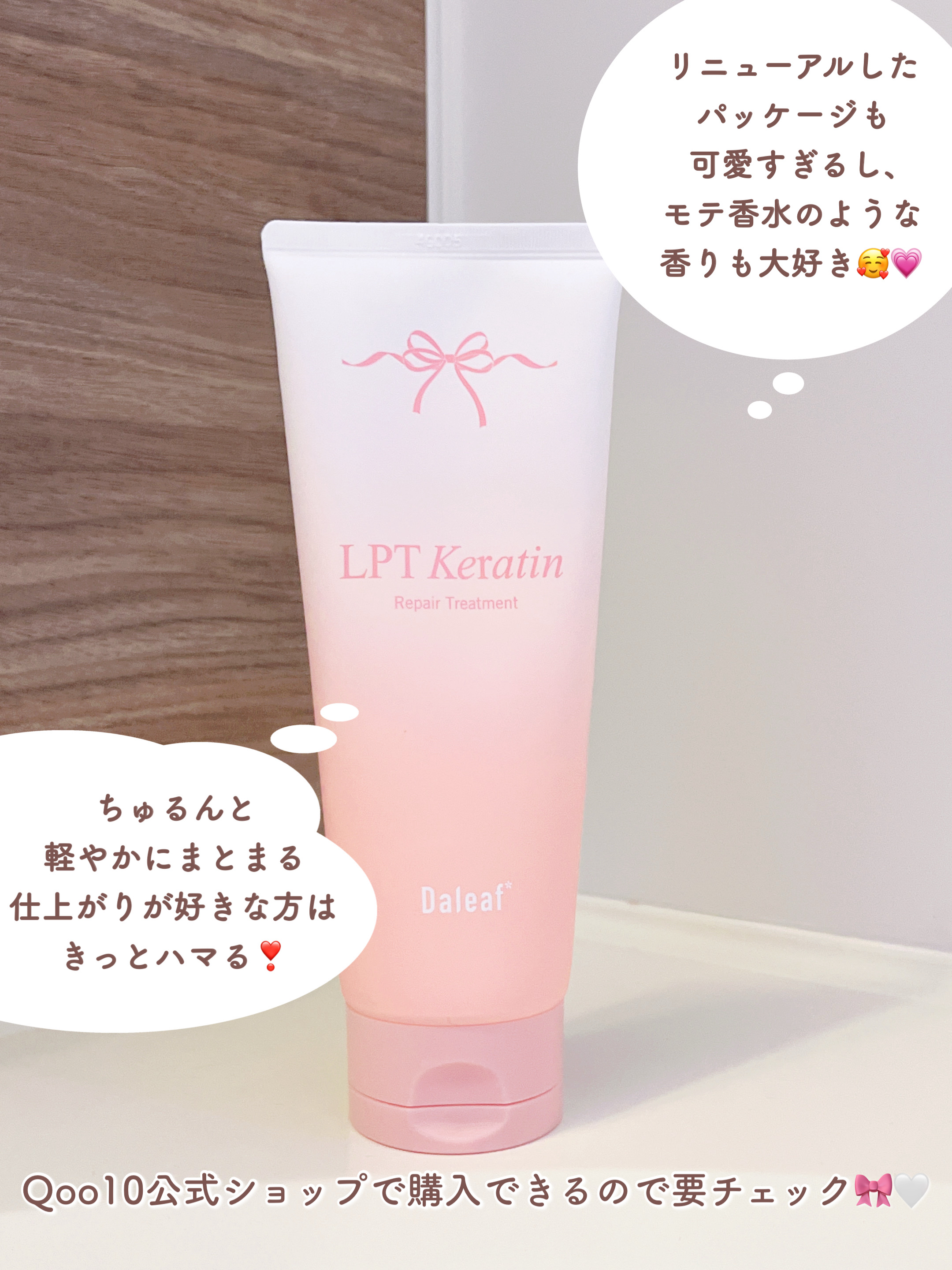 Daleafさまよりいただきました⚘⡱LPTケラチンリペアトリートメント低分子と高分子タンパク質のダブル配合でダメージヘアをケアしてくれるトリートメント𓈒𓏸︎︎︎︎柔らかいクリームが髪に馴染みやすく、ほのかな香りに癒されます☺️♡ドライヤー後...