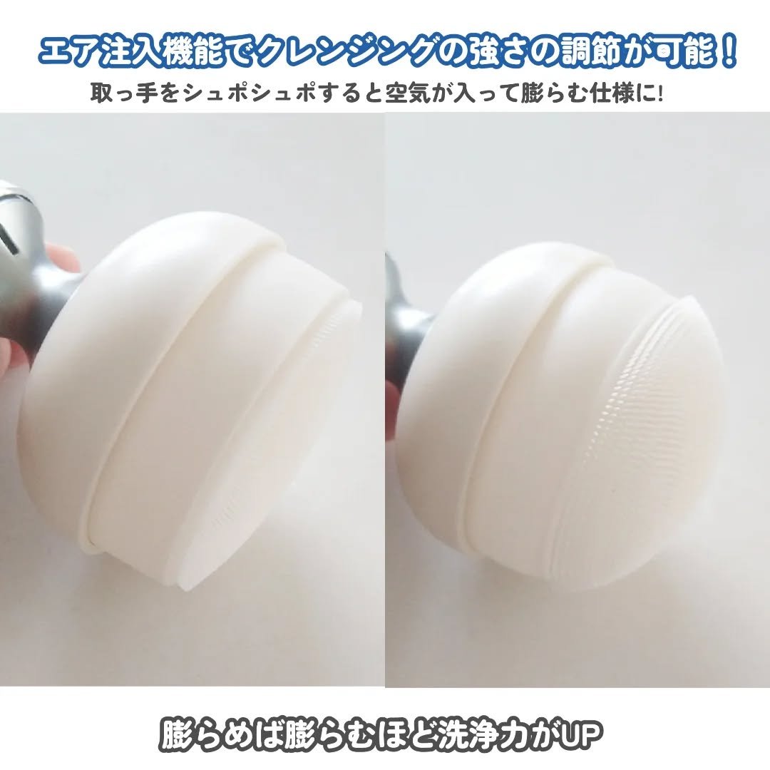 themaqueenAirCushionCleansingBrushエア注入装置でクレンジングの強さを調整し、自分の肌に合ったクレンジングができちゃう優秀ブラシ💗0.3mmの抗菌微細シリコン突起2,000個が毛穴の皮脂や角質を徹底的に洗浄して...