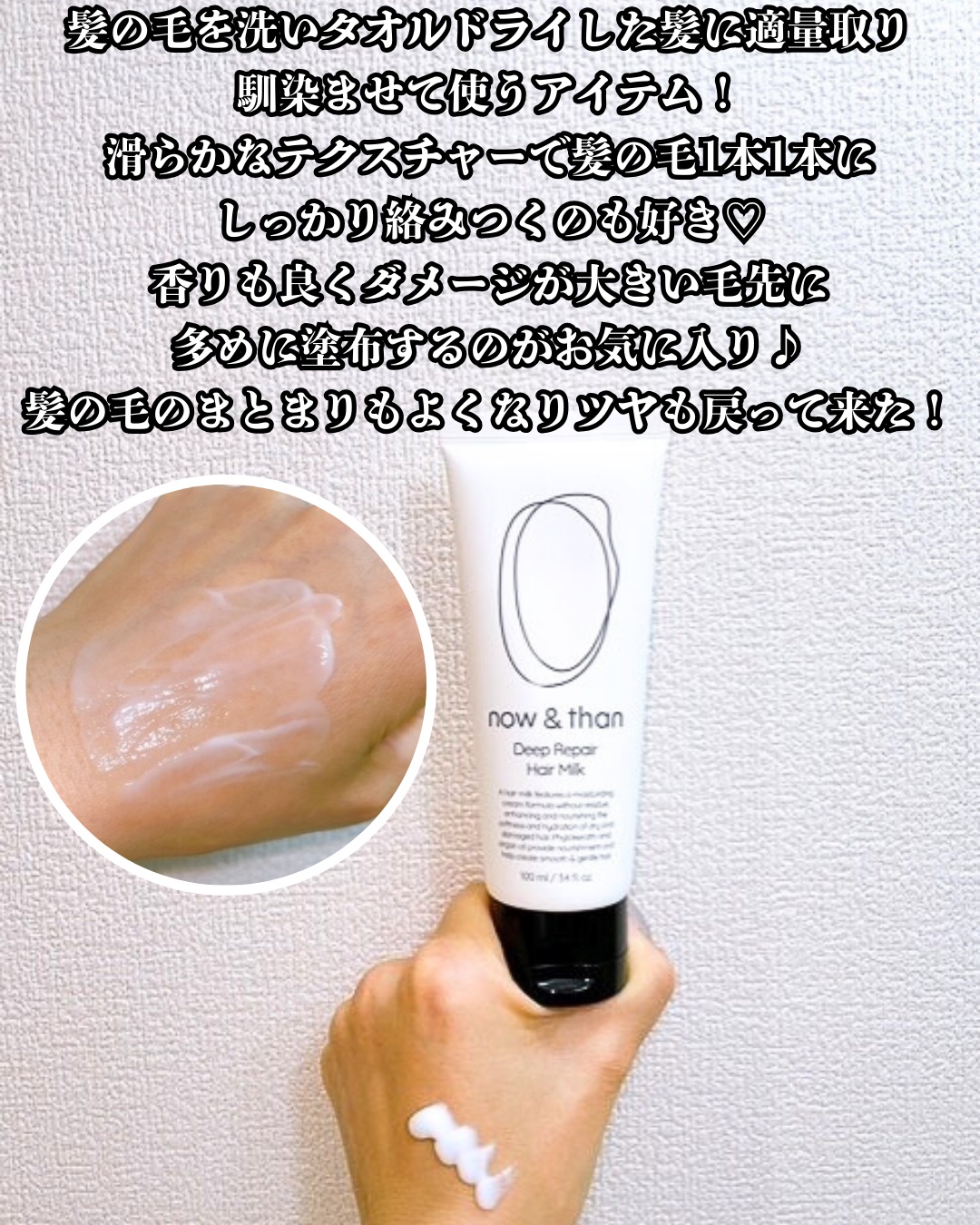 ⚪️now&than⚪️ディープリペアヘアミルク✴️ダメージヘアに豊かな栄養と水分感を💧✨チューブタイプのヘアミルクって使いやすい❕お風呂上がりのタオルドライあとにももちろん乾いた髪にも使えるので朝のスタイリング🪮に使うのが好きです🫶☑︎フィ...