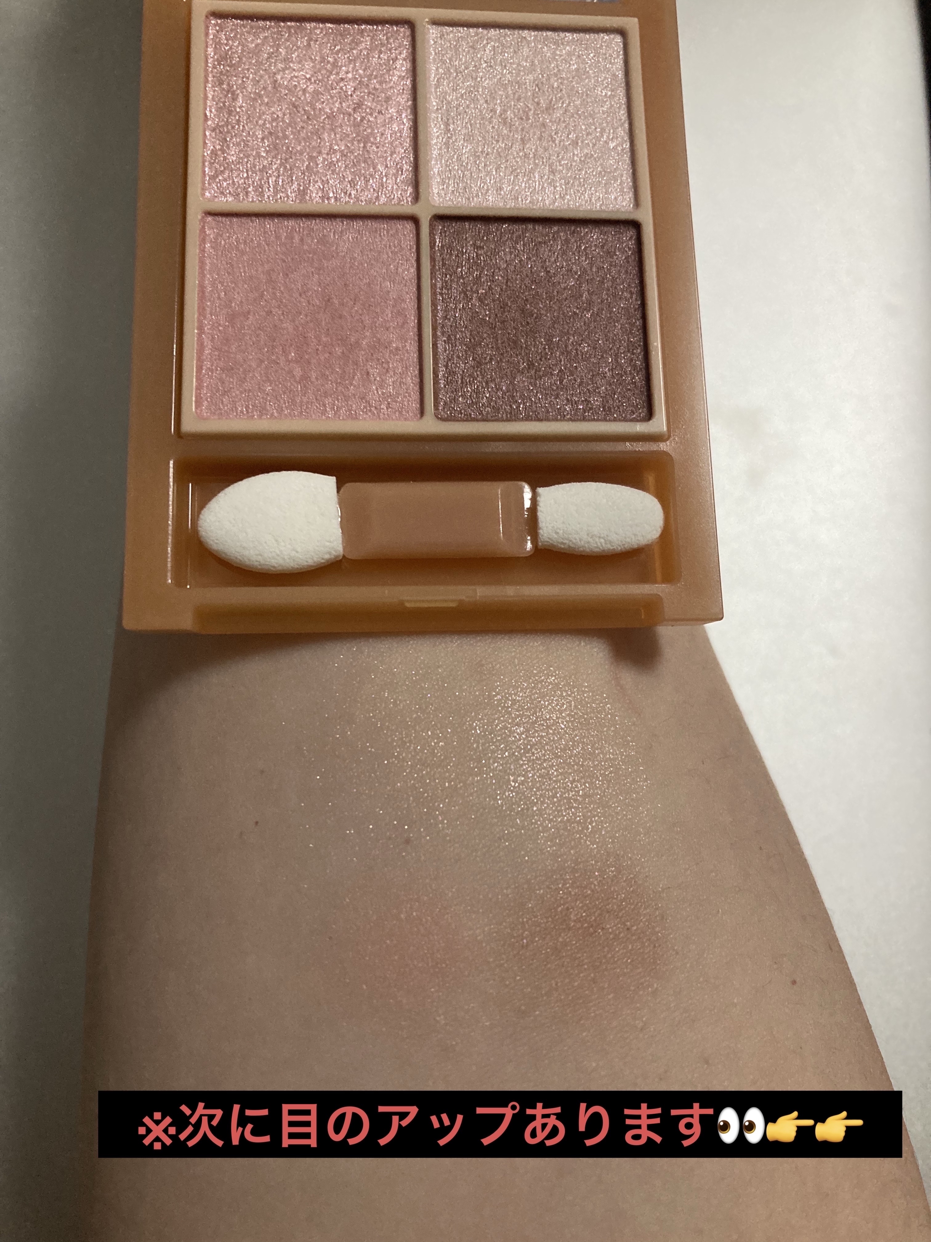 - ラメ・パール・マット3質感の4色アイシャドウ。 肌馴染みの良いベージュを基調としたカラー。ラメ・パール・マットの3質感を重ねて、自然にまぶたを強調し奥行のある大きな目元へ。 しっとり溶け込むような柔らかなパウダーなので、スルスル伸びてまぶたにピタッと密着。保湿成分(スクワラン・ホホバ種子油)配合。