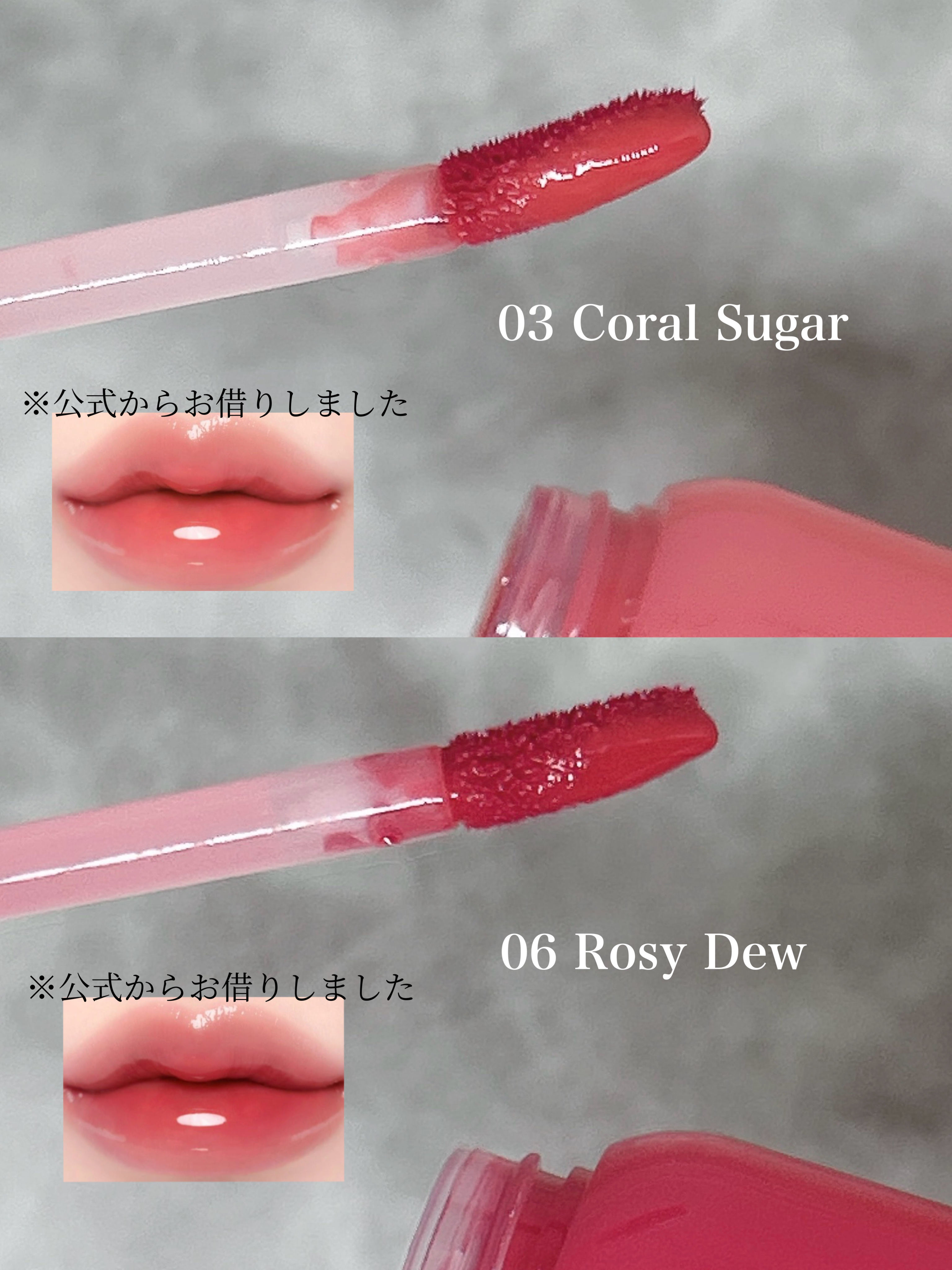 - 【夏新作2カラー登場!】 まるで果実のしずくがそのままリップになったような、みずみずしさと繊細なツヤを詰め込んだ「ジュージーデューイグロウティント」 夏新作で登場する新色「ベリーハート」、「タロミルク」は、透明感とふんわりとした色づきを徹底的にこだわって、何度もテストを重ねて生まれた特別なクールトーンカラー。 ひと塗りで唇をうるおし、重ねても重くならず、果実たっぷり!光をまとうような仕上がりに! - 蜂蜜に漬けた果物のように、うるちゅるふっくらとした果汁粘膜「ジューシーデュイグロウティント」 ミニだけの限定4色 15 ローストロベリー 16 ハミングピンク 17 ロージーシナモン 18 モーブディープス ♡唇に触れた途端、ぷるんと色っぽい果汁コーティング 果汁コーティングがじゅわっと唇に広がり、透明に輝くうるちゅる感を!蜂蜜に漬けた果物のようにぷるんぷるんとした唇を演出するグロウティント ♡イエベ、ブルべに合わせた多彩なカラーバリエーション 14色のカラーバリエーションで単独または、2色レイヤーリングして様々なリップメイクを演出 ♡ティント+リップグロスを一気に塗る効果! ティントの鮮やかな発色とリップグロスのうるうる透明ツヤ感が何度塗り重ねてもべたつかせず、唇にピタッと密着! 2025年11月1日(土)より、Qoo10公式ショップおよび東京フラッグシップストアにて発売予定