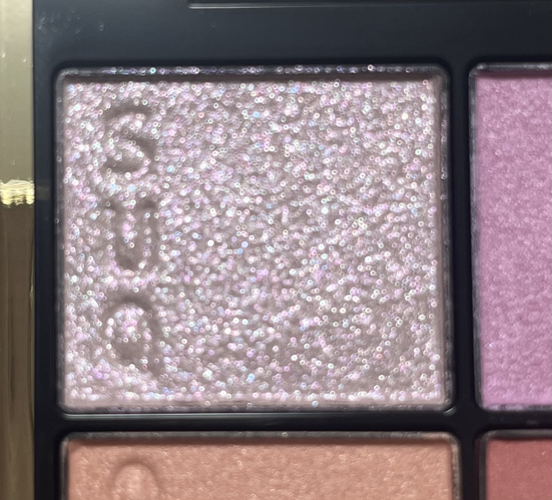 ウォッシュドピンク×バーントピンクのパレット。褪せたようなウォッシュドピンクに、赤みの強いバーントピンクを合わせ、シルバーとパープルのパールのアクセントを添えて。ノスタルジックでセンシュアルな印象の目もとに左上の大粒シルバー、パープルのラメが...