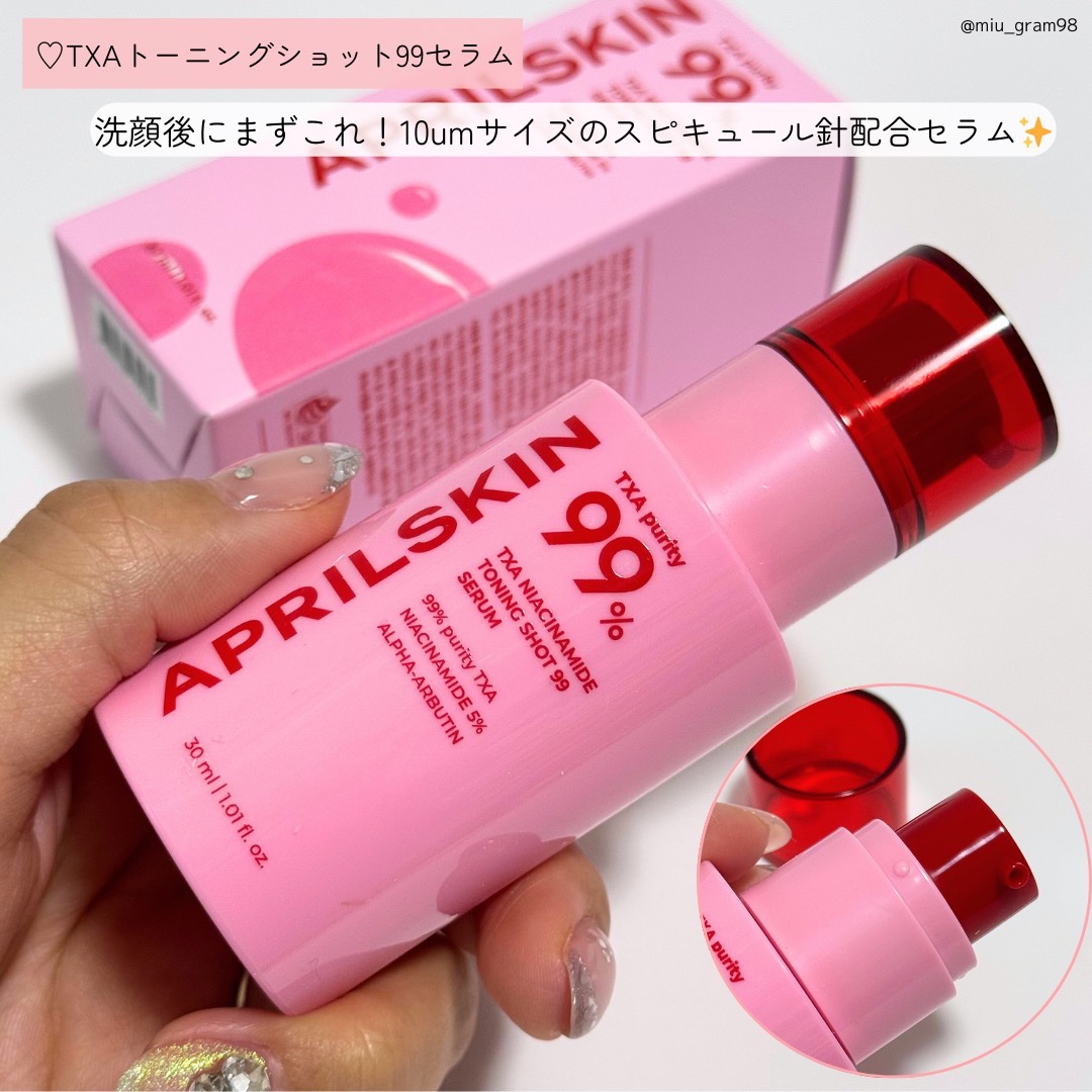 可愛いピンクのスキンケア💓▫️APRILSKIN・TXA99ディープクレンザー・TXAトーニングショット99セラム・TXA99ミルキートナートラネキサム酸とナイアシンアミドを配合したスキンケアシリーズの3アイテム。セット使いで明るくいきいきと...