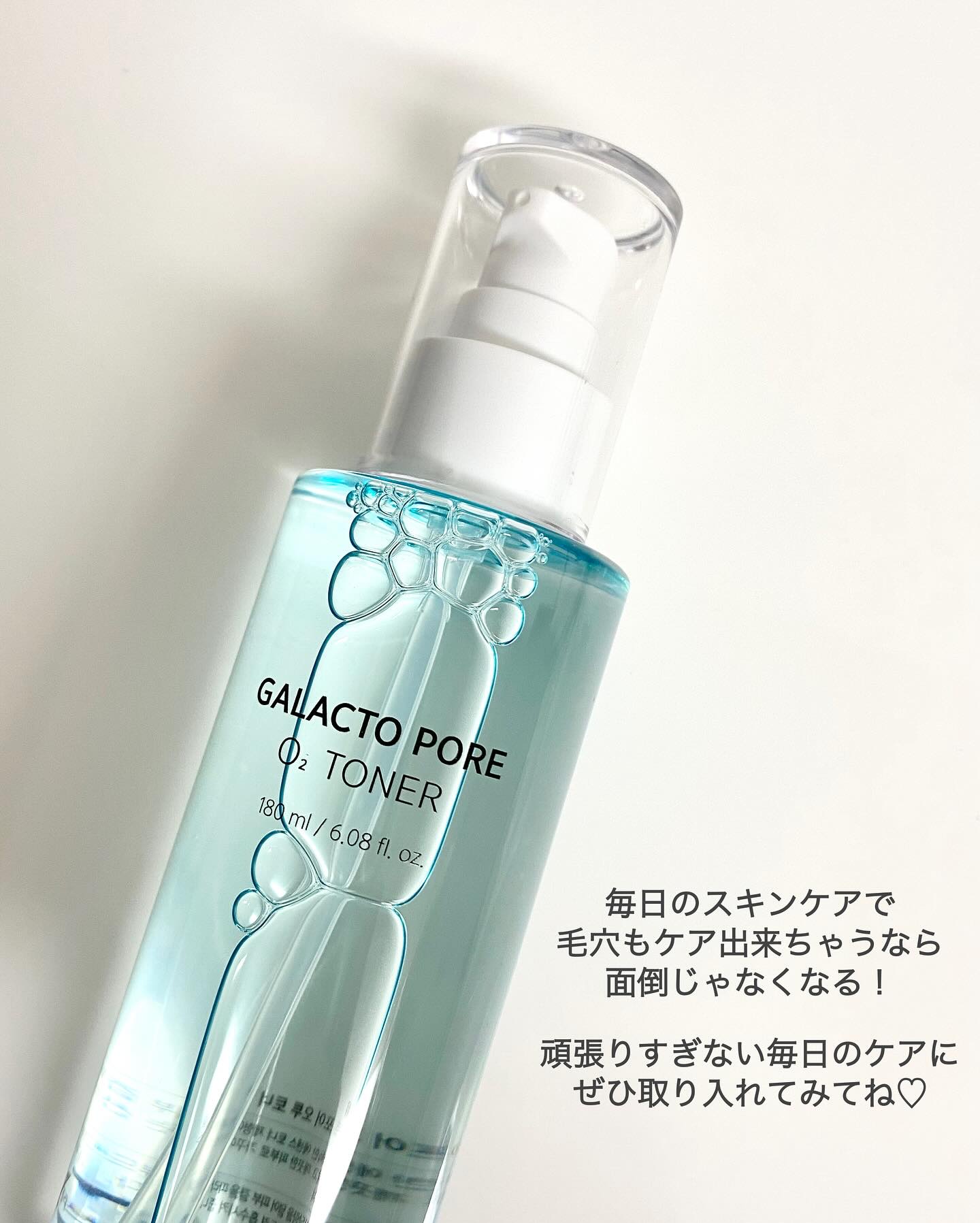 - ガラクトシリーズより新しく登場したガラクトポアオーツー(O2)トナー。 新感覚の酸素を含んだバブルエッセンスが毛穴に詰まった古い角質や過剰な皮脂をケアして肌のキメを整え、イキイキとした肌印象に導きます。 敏感なお肌にもやさしい使い心地で毛穴ケアが可能です。 しっとりべたつきのないテクスチャーで朝晩使用でき、さらに乾燥による毛穴目立ちを防ぐため肌表面に潤いを与えます。 皮膚低刺激テスト完了済*。敏感肌の方もご使用いただけます。 <特長成分> ガラクトミセス発酵ろ過物 : 肌にやさしい使い心地でうるおいを与える。(保湿成分) ウィッチヘーゼル : 肌を引き締めなめらかな印象をサポート。(整肌成分) PHA : 角質ケア成分配合。(角質柔軟成分) <テクスチャー&香り> - テクスチャー しっとり伸びやすく肌になじみやすいテクスチャー - 香り シトラスハーブ系 *全ての方に皮膚刺激が発生しないということではありません