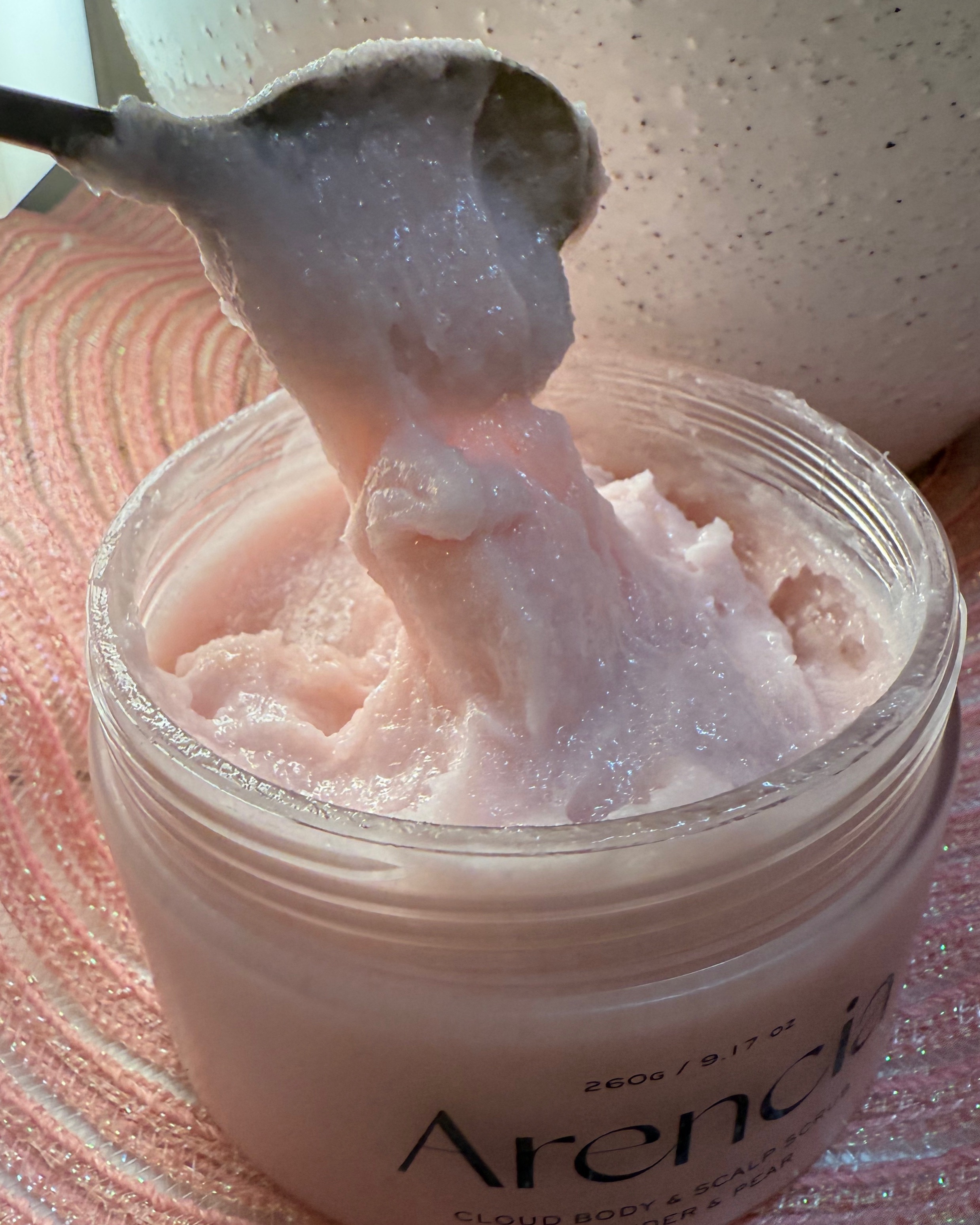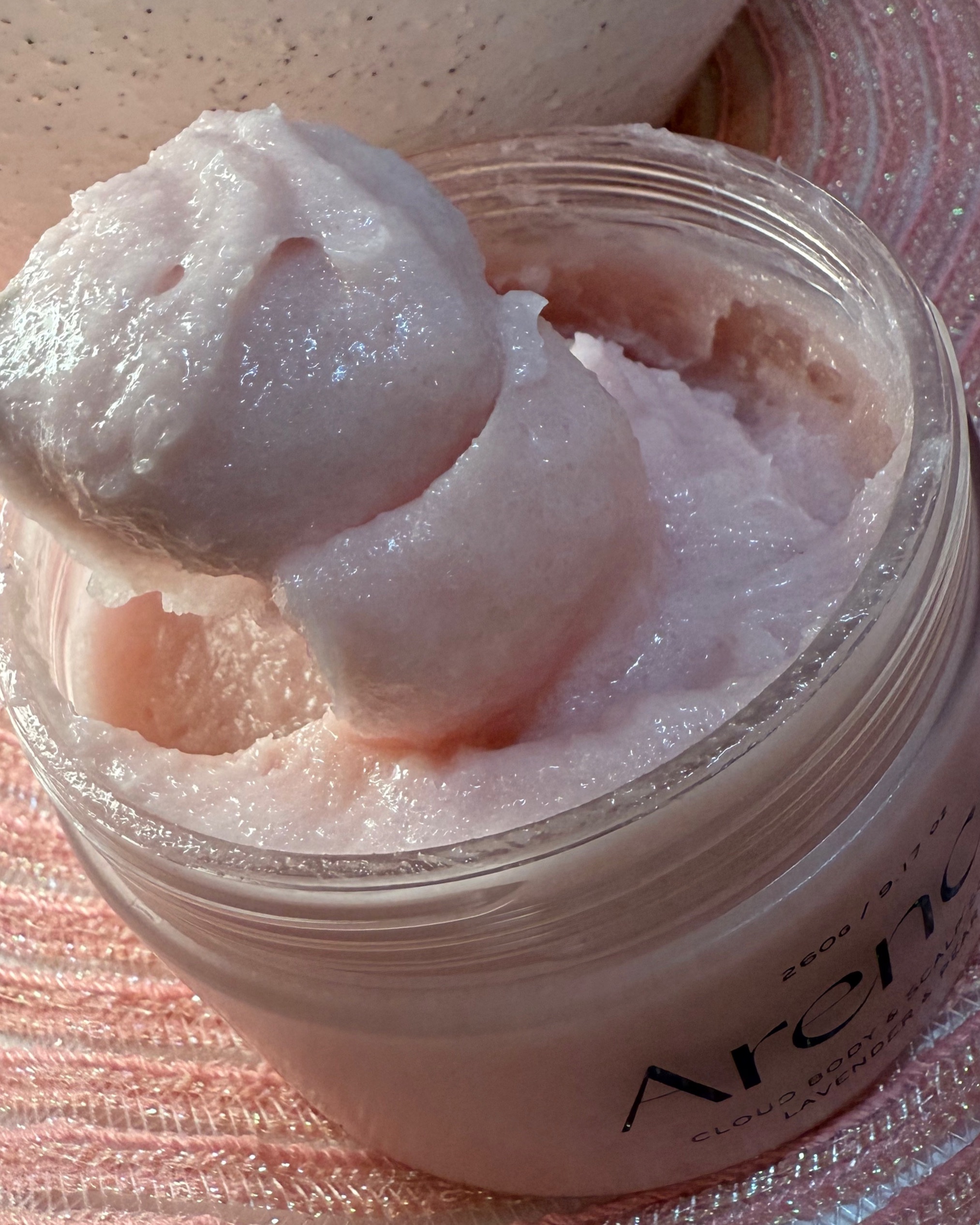 ✴︎ArenciaCLOUDBODY&SCALPSCRUBLavender&Pearアレンシアのお尻もちスクラブ。ラベンダー&ペアは熟した洋梨の甘い果実と爽やかなラベンダーの愛しい組み合わせ!乾いた肌にのせるとザラザラしていて刺激感があるので...