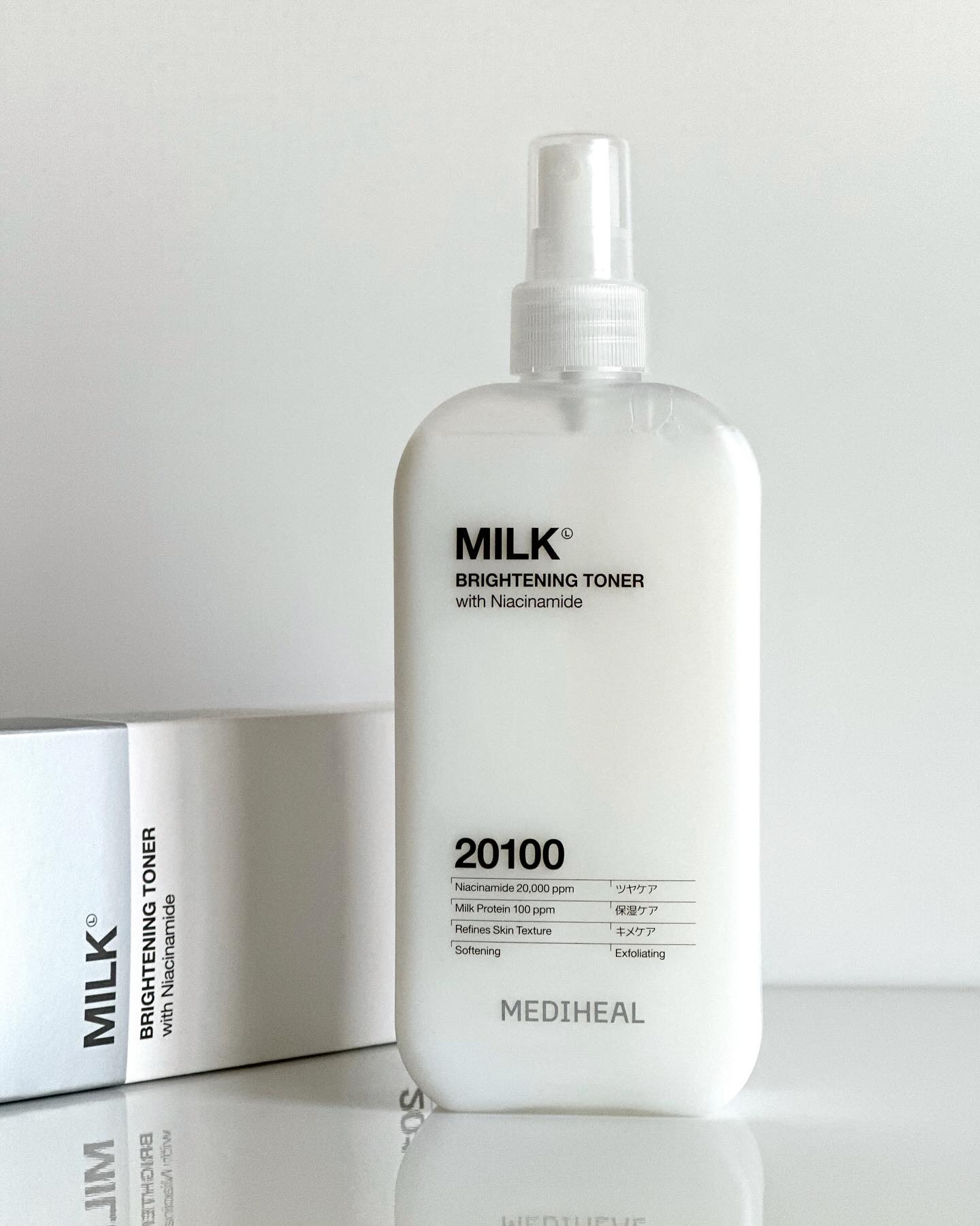 \うるツヤミルクトナー/MEDIHEAL🍼ミルクブライトニングトナー🍼300mlうるおってツヤのあるはだへ☑︎3種のミルク成分(*1)☑︎グルタチオン(*2)角質ケア・肌荒れ防止☑︎LHA(カプリロイルサリチル酸)(*2)☑︎ツボクサエキス(...