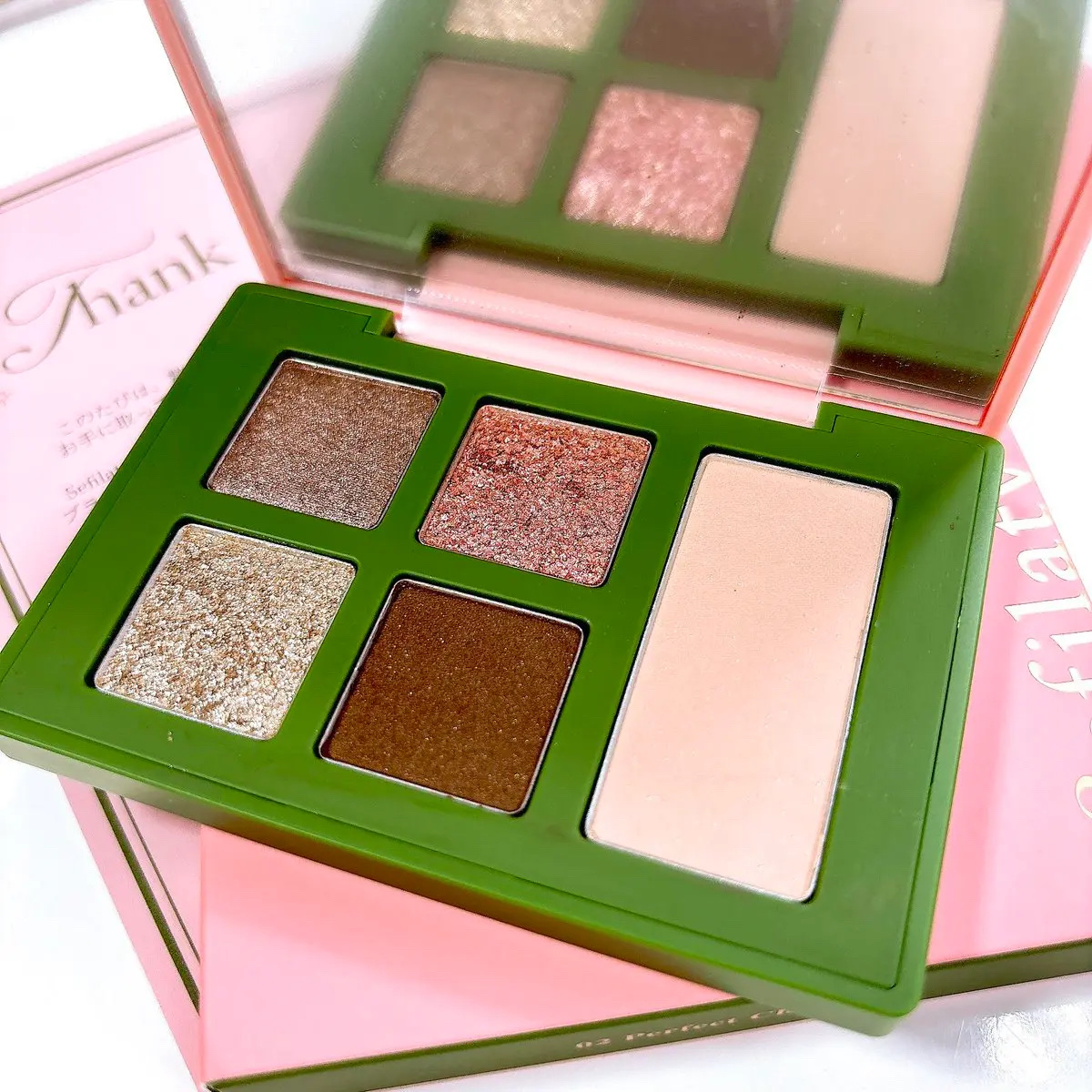 Instagramで話題になっている美容系クリエイター 新希 咲乃 さんのプロデュースしたメイクアップブランドSefilaty(セフィラティ) クイーンバレットアイズはグリーンとピンクのパケが目をひきます。ありそうでないカラーでかわいい。 ラメの大きさがランダムでキラキラがキレイにのり、ラメとびもなさそう。普段の日もお出かけにも使える優秀なアイパレです。