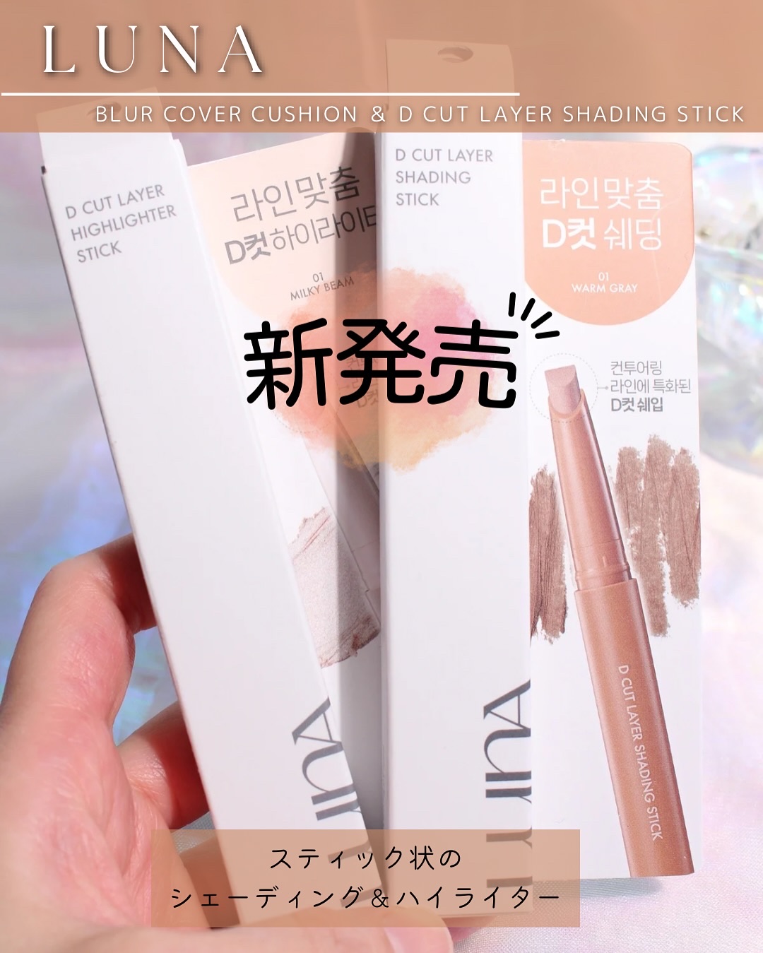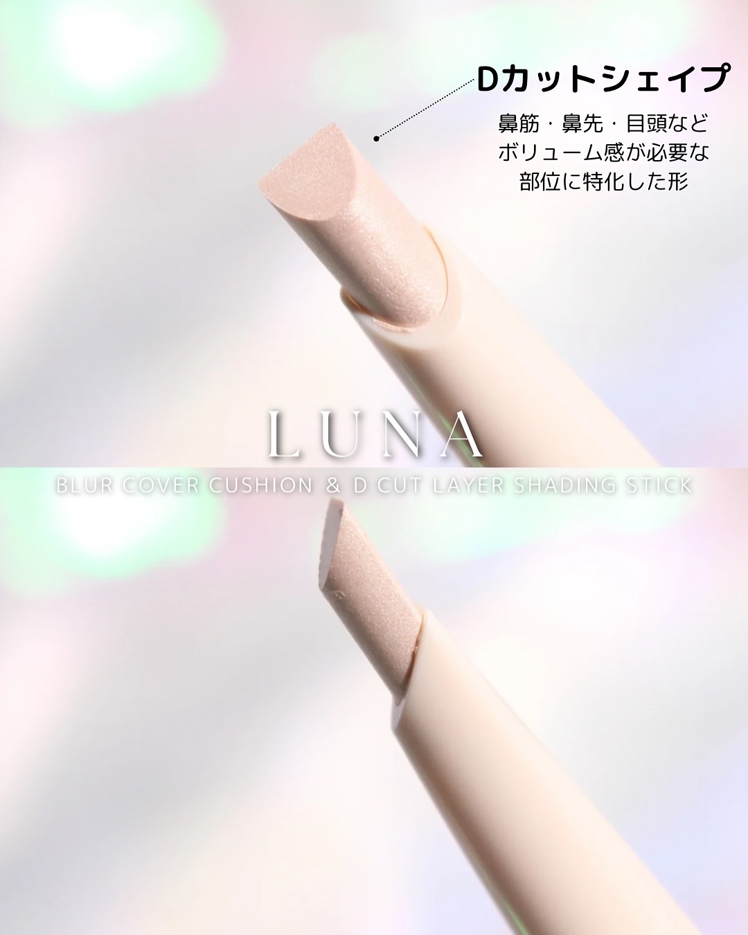 #LUNA☑︎#Dカットレイヤーシェーディングスティック01ウォームグレー02クールグレーDカットされているから鼻筋やフェイスラインなど陰影をつけたい部位にピッタリフィットᵕ̈*滑らかなテクスチャーでボカしやすく発色もナチュラルだから調整...