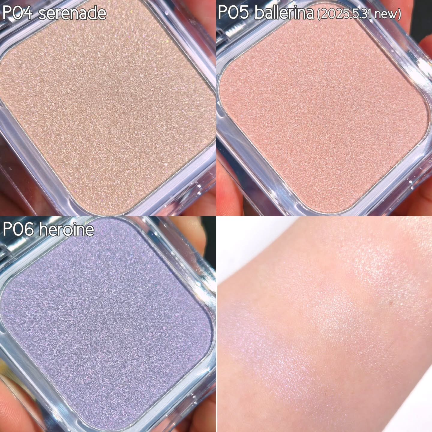 持ち運びしやすいサイズ感❤︎︎︎︎❤︎mudeフェイスフィルボリューマーハイライター❤︎︎︎︎❤︎ブラシでふわっとつけると可愛い🤦♀️P01.P02は2色入っててマットだからコントロールカラーとして使いやすい◎単色はまじでギランギラン過ぎて...