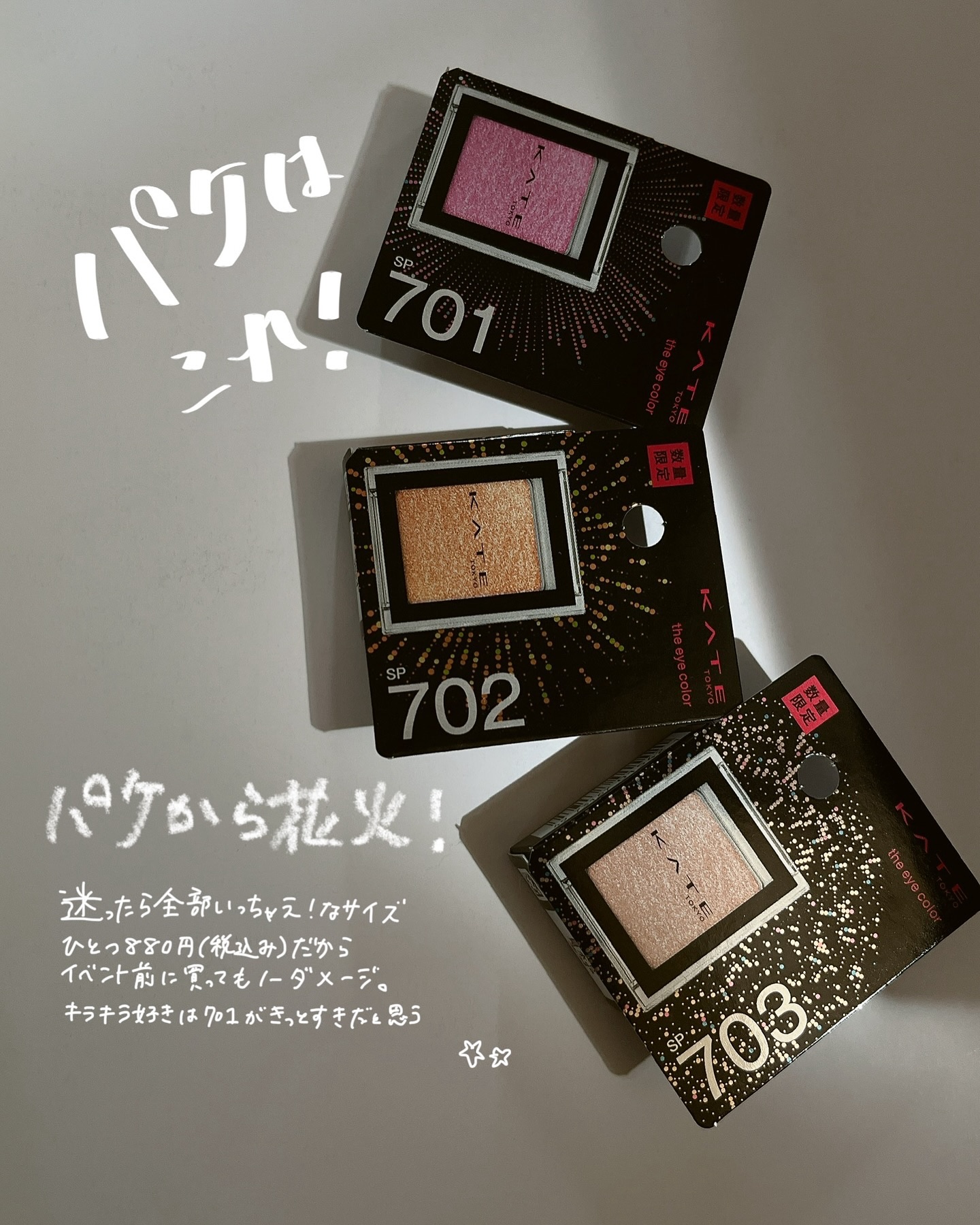 KATE様のPR案件としての投稿です。KATEから花火のように咲き誇る、スパークルな輝きと濡れツヤ感✨密着成分高配合で輝きが落ちにくいシングルアイシャドウが限定登場🎇ザ アイカラー(スパークル) 限定3色└SP701 スパークルピンク 【欲名...