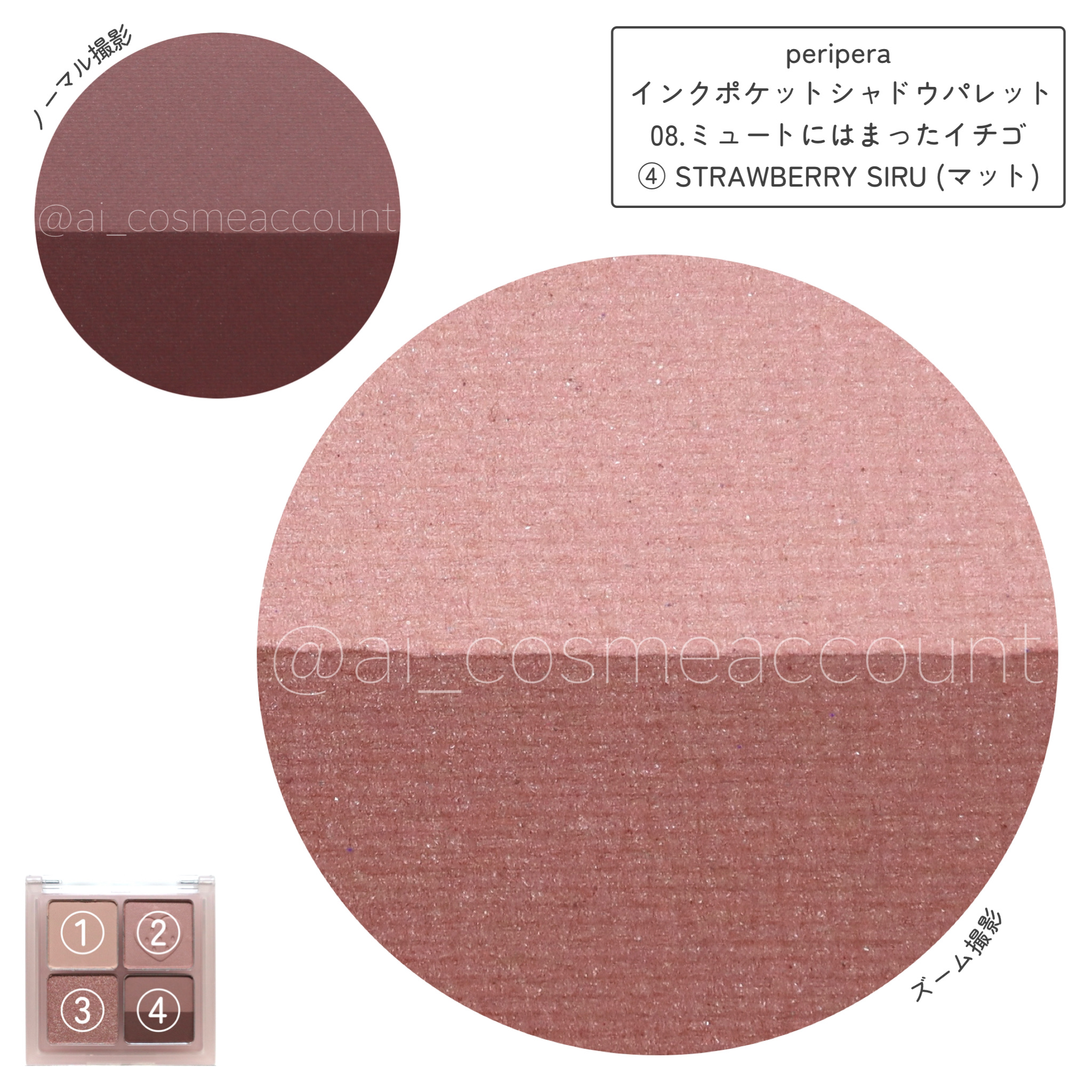 ペリペラインクポケットシャドウパレット08ミュートにはまったいちご落ち着きスプーン1杯、奥ゆかしさスプーン2杯、ミュートにポチャンとはまっちゃったいちごポケットにスポッと入るコンパクトなサイズ感♡6つの発色が楽しめるアイシャドウパレットです♡...