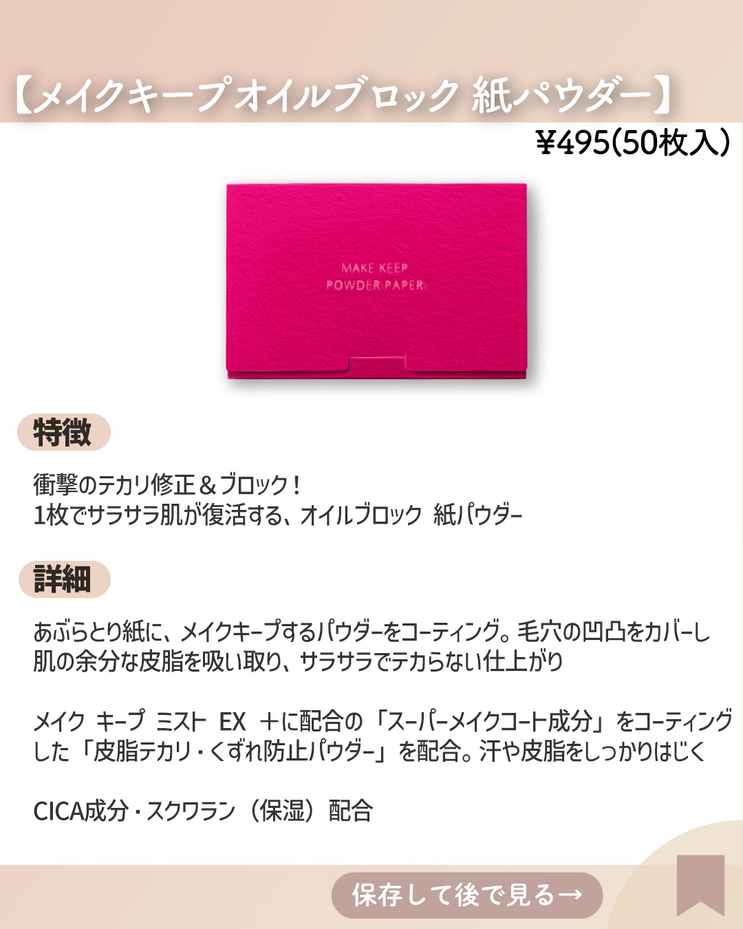 コーセーのメイクキープシリーズはミストとパウダー両方持っていて毎年夏に大活躍☀️今回そんなメイクキープシリーズから"オイルブロック紙パウダー"が出たということで早速買いに行きました🏃♀️【KOSE】メイクキープオイルブロック紙パウダー50枚...